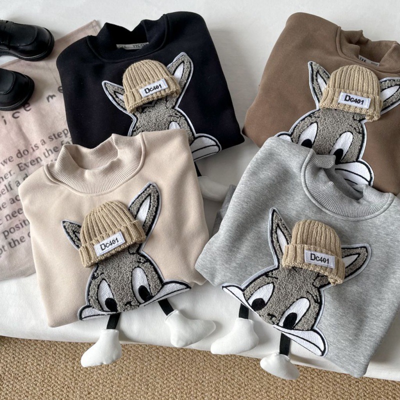 | nameOriginal | Boys and Girls cartoon sweater 2023 autumn and winter New Year fleece-lined children's one-piece velvet baby half turtleneck warm top |