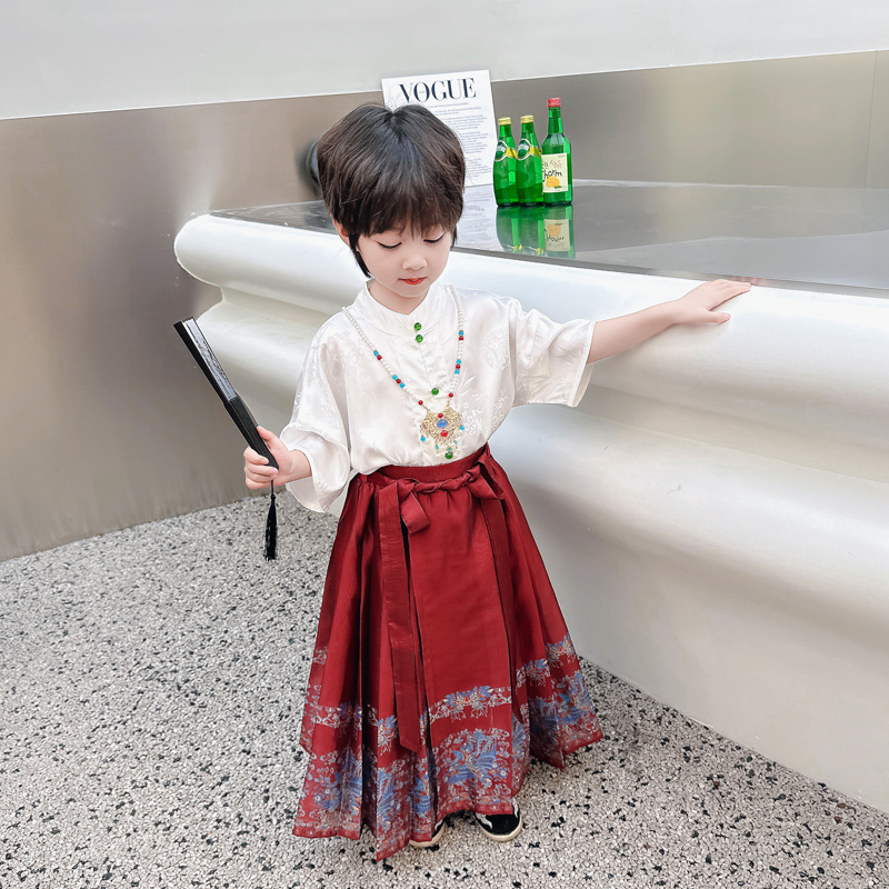 | nameOriginal | Boys and girls Chinese style horse-faced skirt suit Chinese clothing improved new Tang suit Chinese style ancient costume suit a generation of hair |