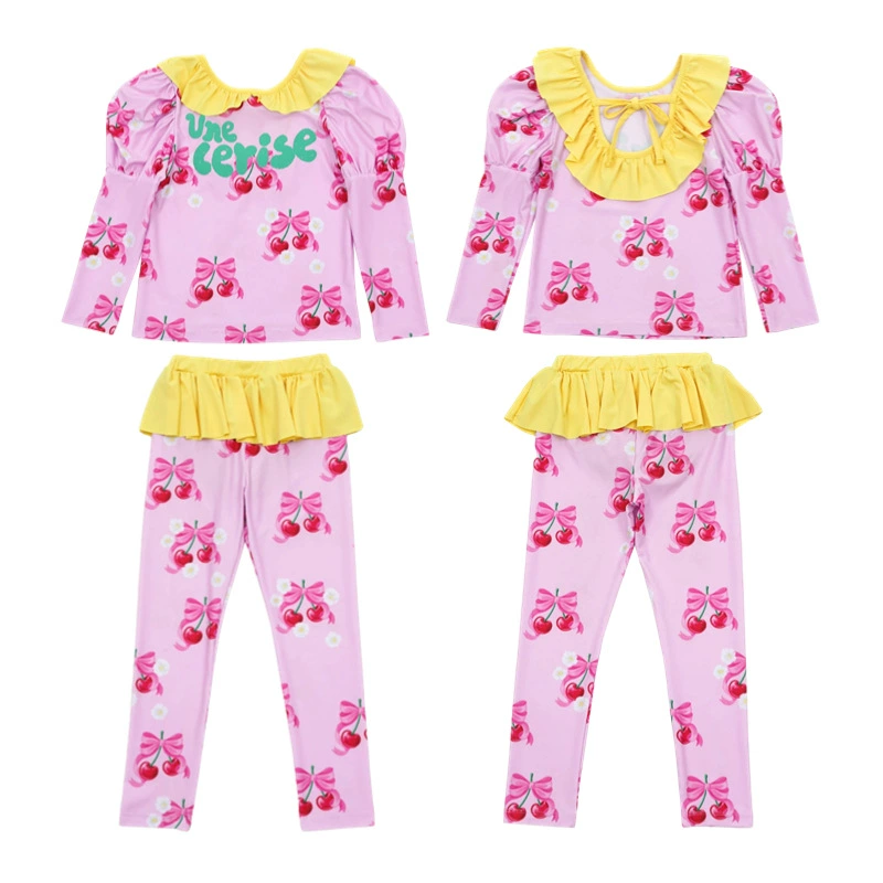 Boys and girls cute printed long-sleeved quick-drying children’s split swimsuit baby ins style cartoon sun protection hot spring swimsuit