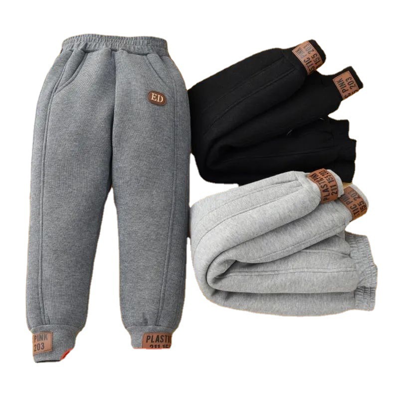 Boys and Girls fleece-lined warm pants autumn and winter clothing thickened outerwear children's trousers medium and big children's lambswool sports pants fashion