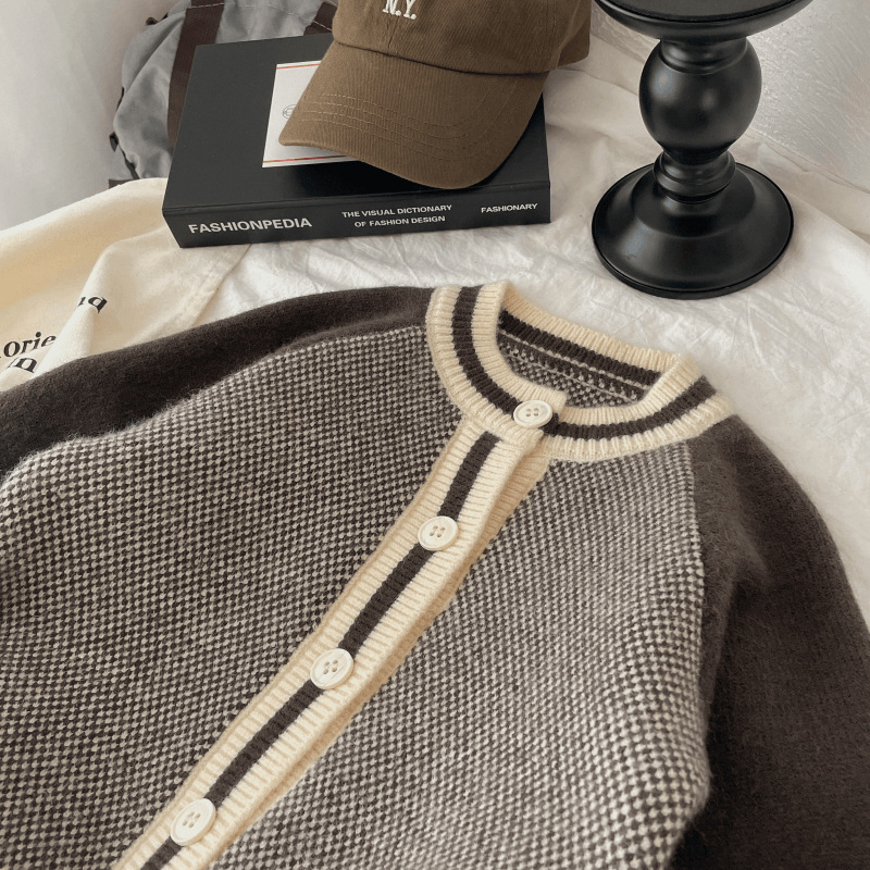 Boys and Girls knitted cardigan sweater 2023 spring and autumn Korean style fashionable contrast color baby knitted coat