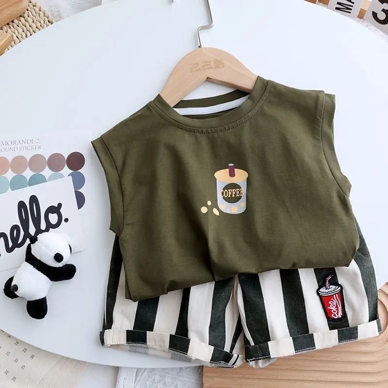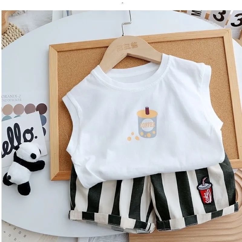 | nameOriginal | Boys and Girls Sleeveless Vest suit 2023 New Stylist Handsome Children's Striped Pants Baby Children's Wear Two-Piece Fashionable |