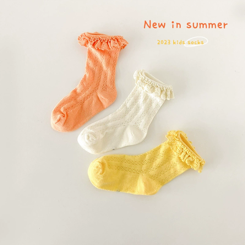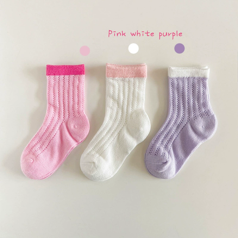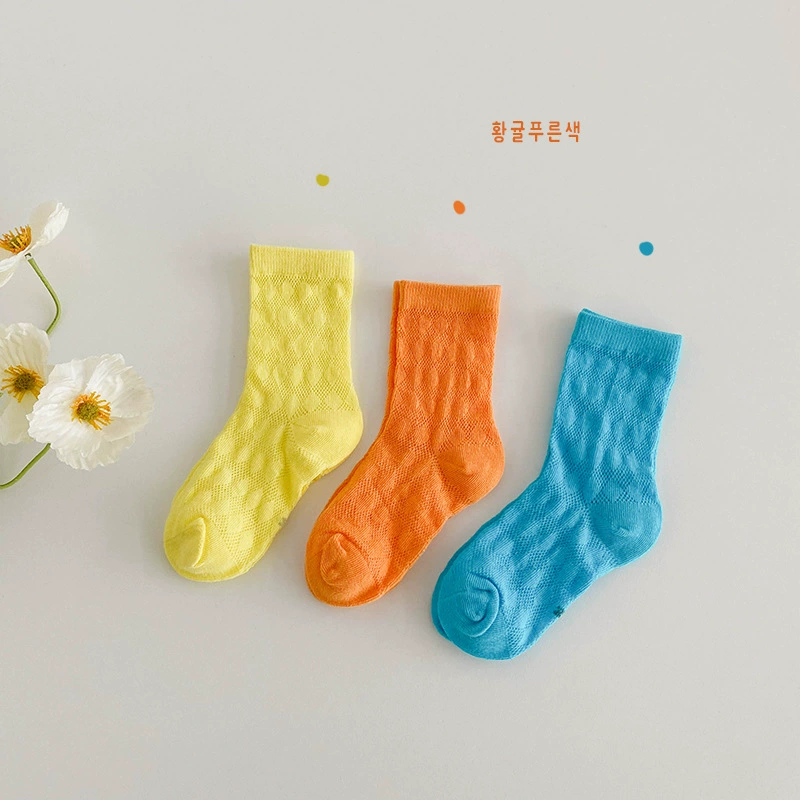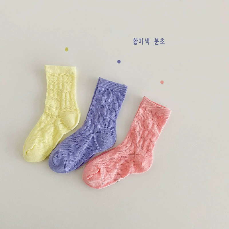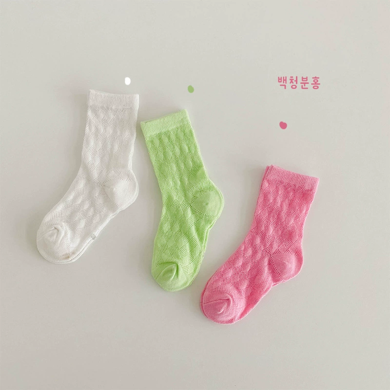 | nameOriginal | Boys and girls socks Korean 2024 spring and summer thin cotton style color-blocked vertical striped mesh socks girls mid-calf socks baby socks |