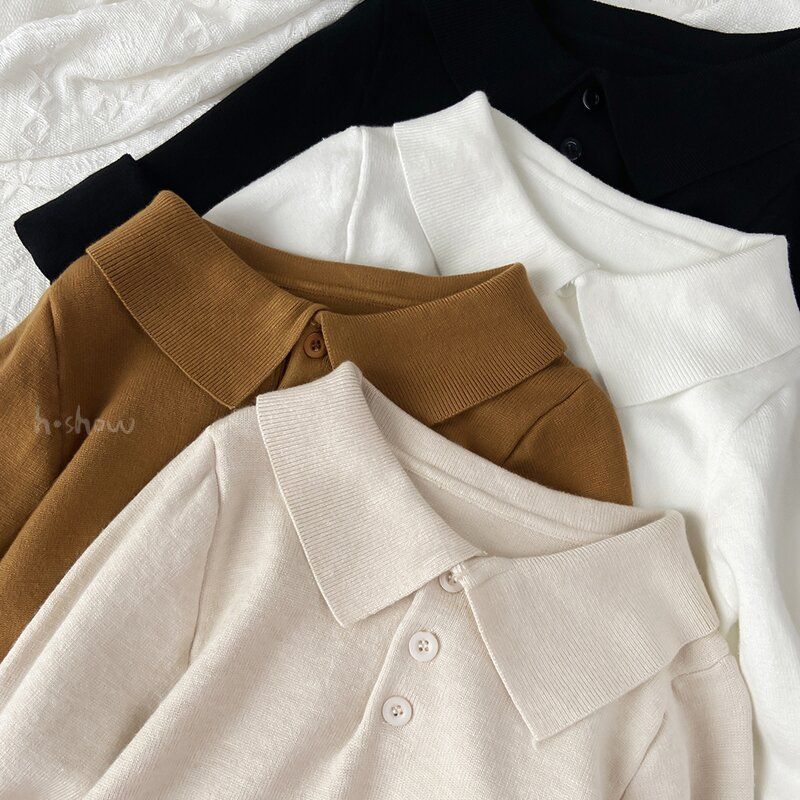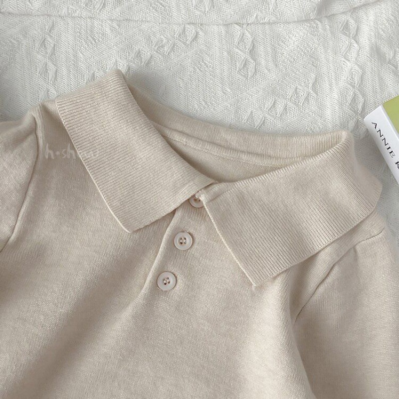 Boys and Girls sweater baby children's bottoming shirt 2024 Spring and Autumn new all-match polo small lapel sweater