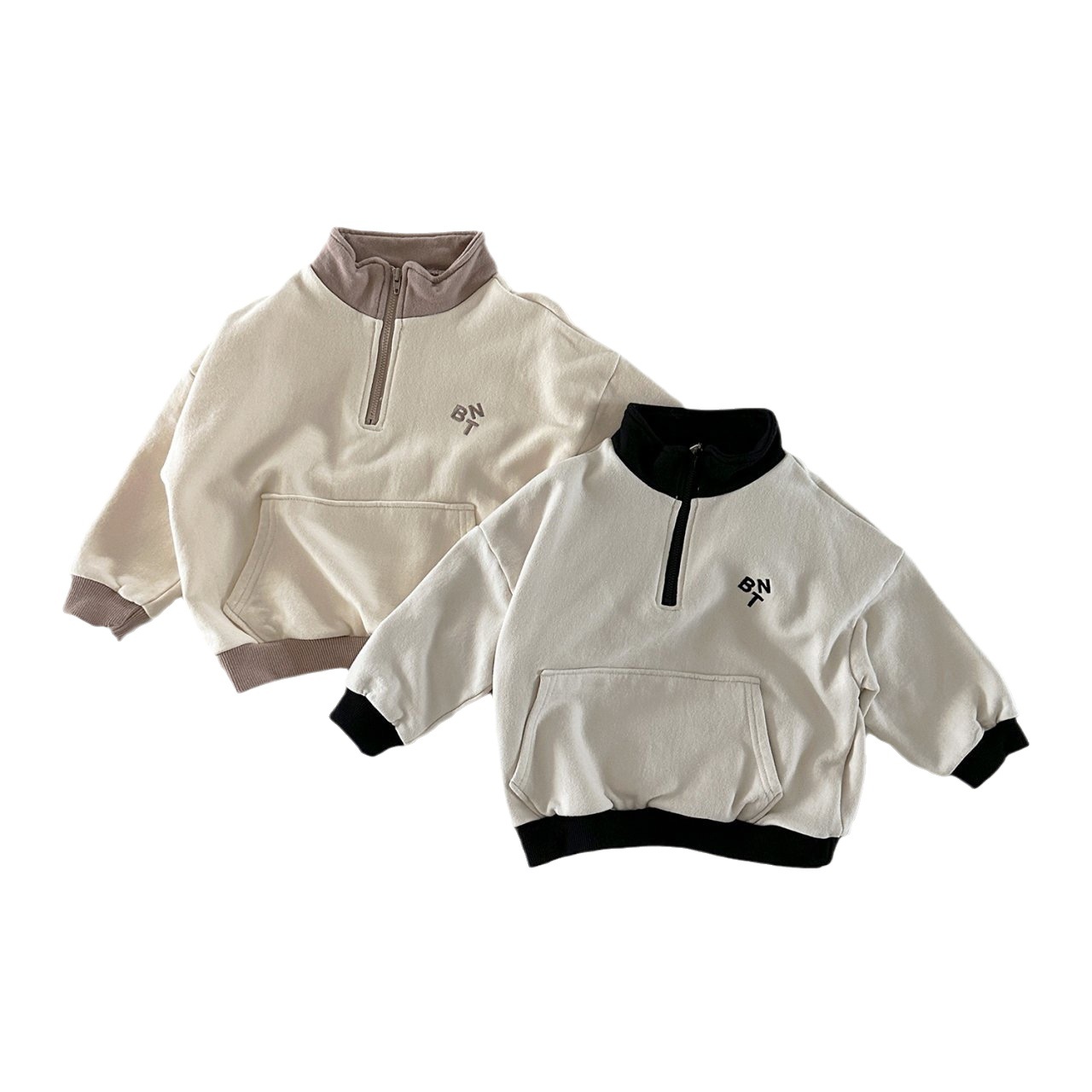 Boys and Girls Sweatshirt Spring and Autumn Children’s Autumn 2024 New Western Style Autumn Girl Half Zip Long Sleeve Fashionable Top