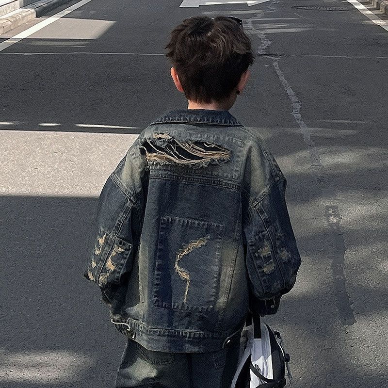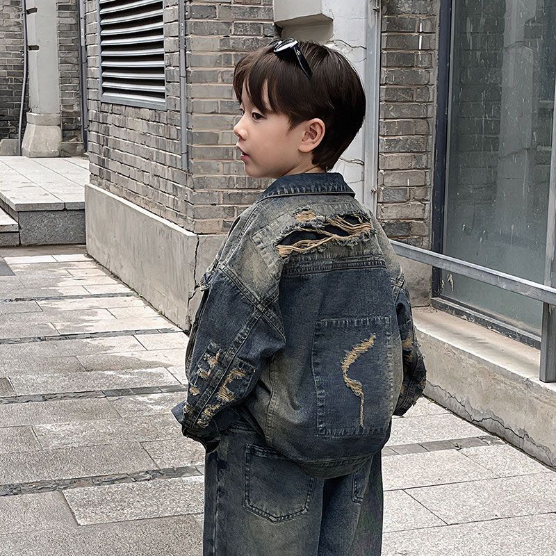 | nameOriginal | Boys' Autumn Jacket Scrap Blue Denim Jacket Korean Style Children's Loose Ripped Jeans Trendy Cool Boys Puppy Handsome |