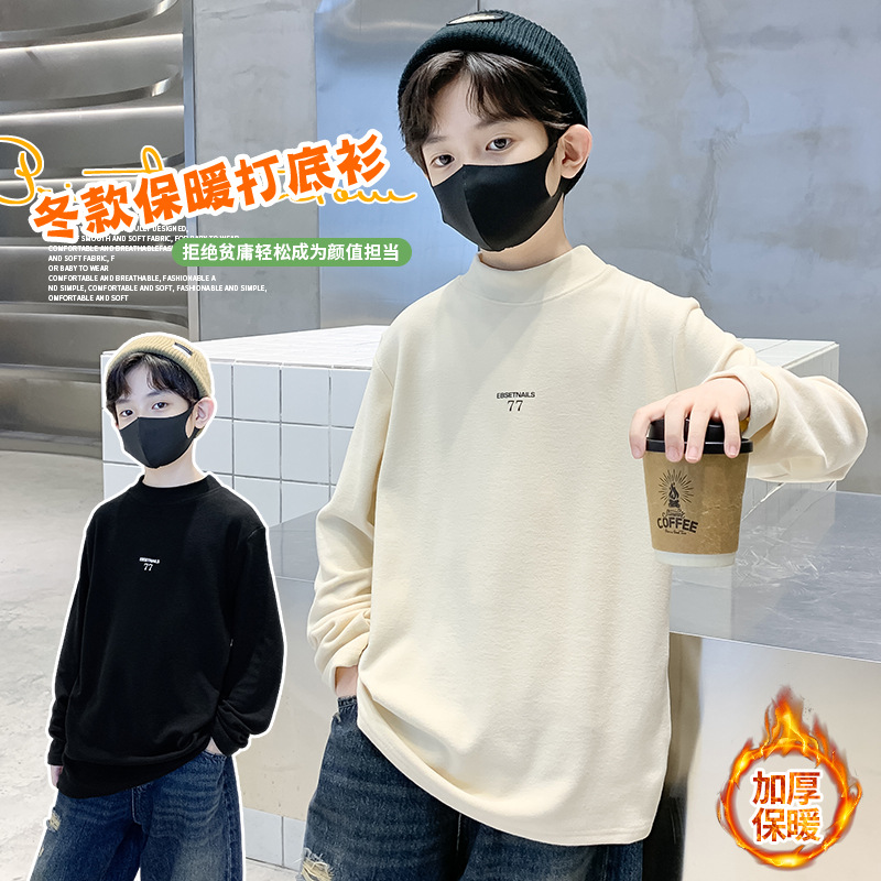 Boys’ base long sleeve 2023 new autumn children’s winter casual half turtleneck skin-friendly soft warm brushed skin-friendly