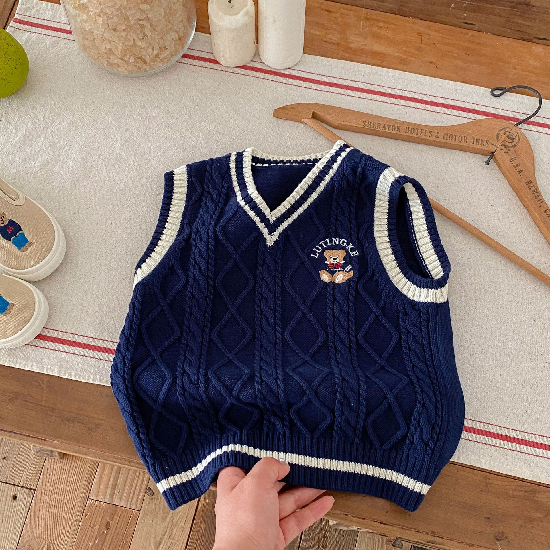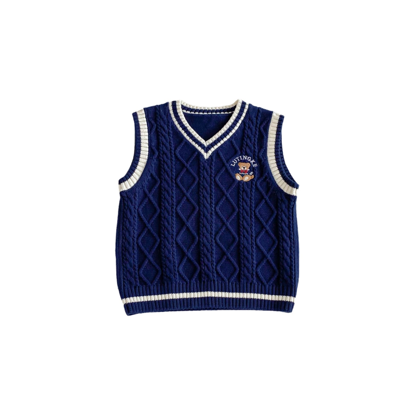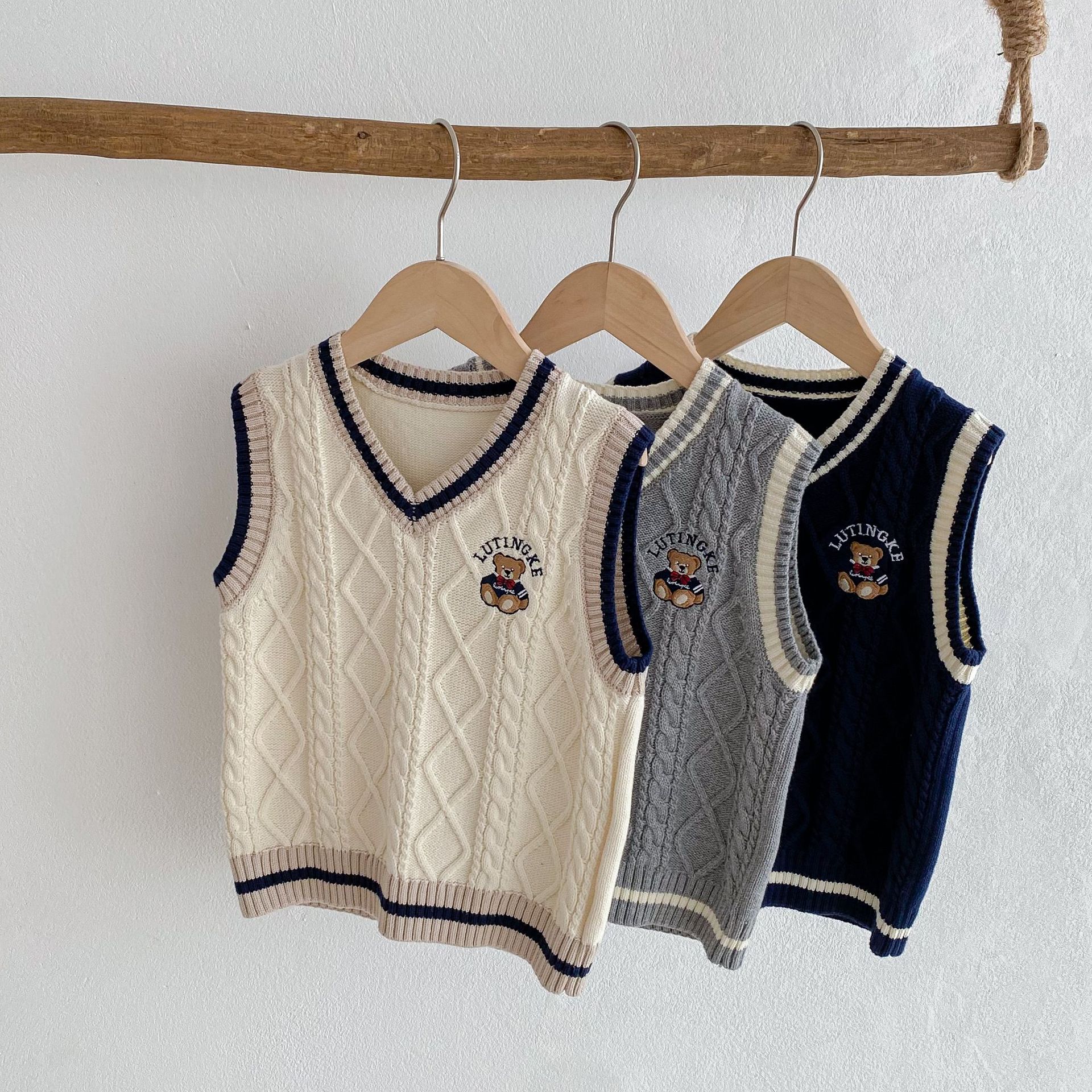 | nameOriginal | Boys Bear Needle New Rope Academy Style Knitted Vest 2024 Autumn and Winter Girls Cotton School Uniform Children's Sweater |