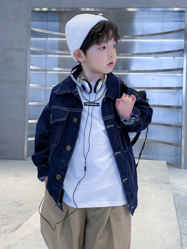 Boys Casual Denim Coat Spring and Autumn 2024 New Children’s Spring Thin Clothes Boys Cool Handsome Top Trendy
