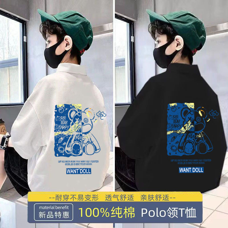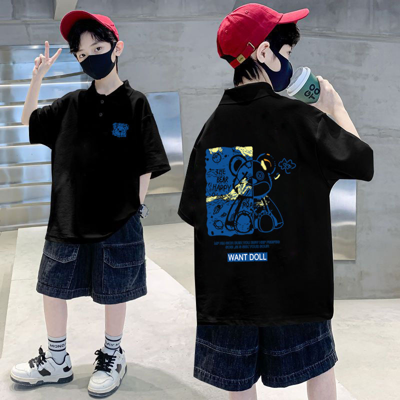 Boy’s clothing leading polo shirt short sleeve T-shirt 2024 new medium and big children popular handsome internet celebrity with collar half sleeve t