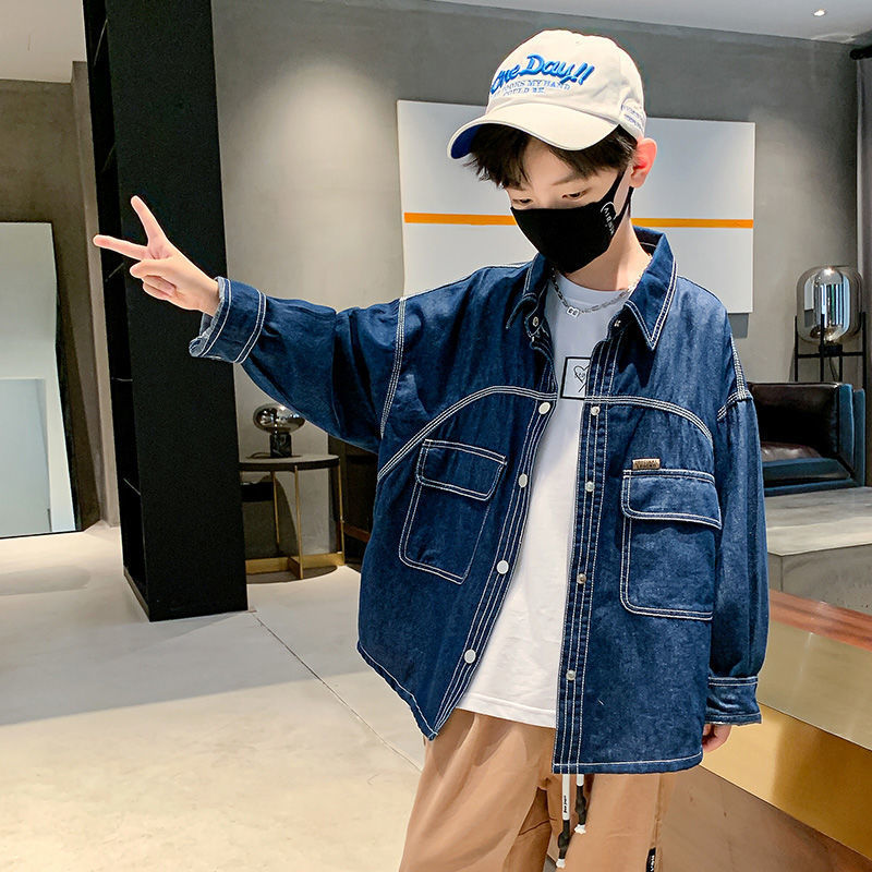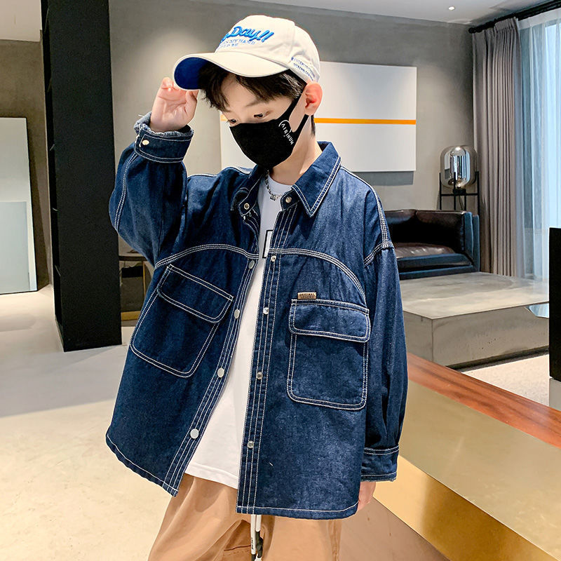 | nameOriginal | Boys' Coat 2024 Denim Teenagers Spring and Autumn Coat Loose Big Children Thin Long Sleeve Autumn Fashionable Top |