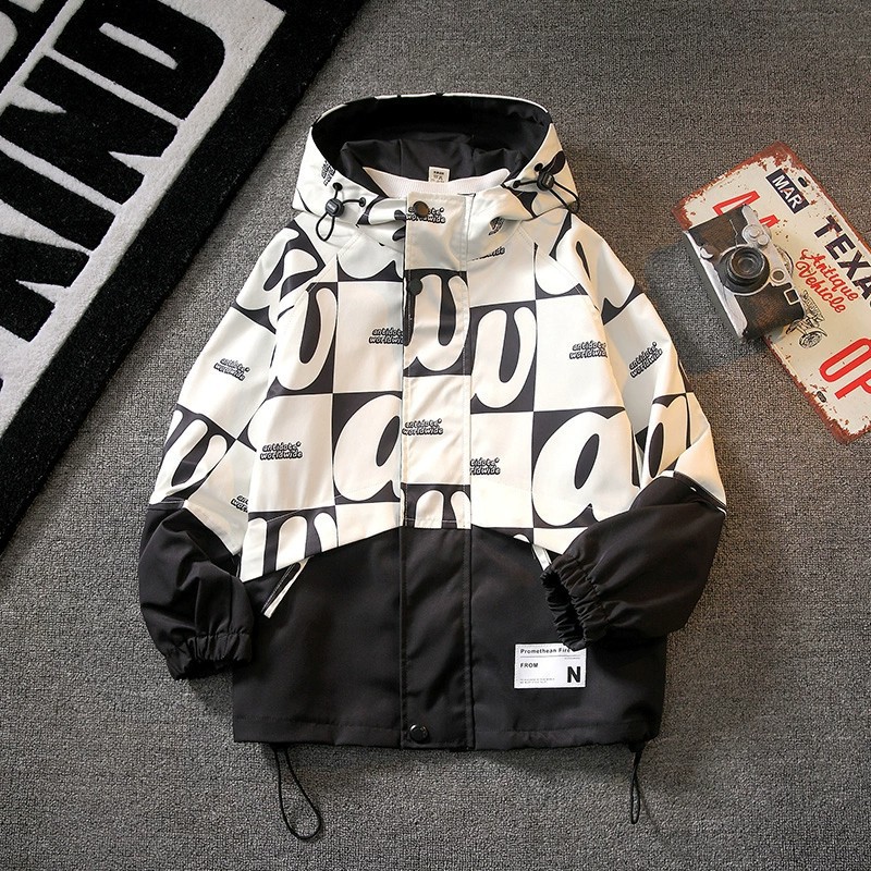 Boys’ coat spring and autumn ruffle handsome 2023 new medium and large children’s autumn clothes boys’ windbreaker fleece-lined jacket fashion