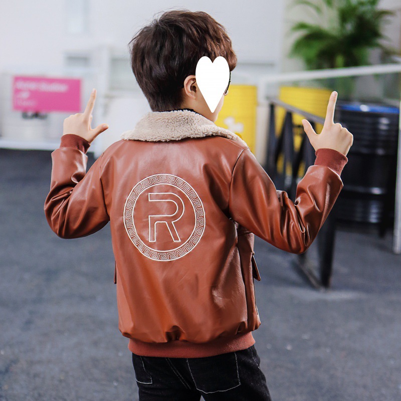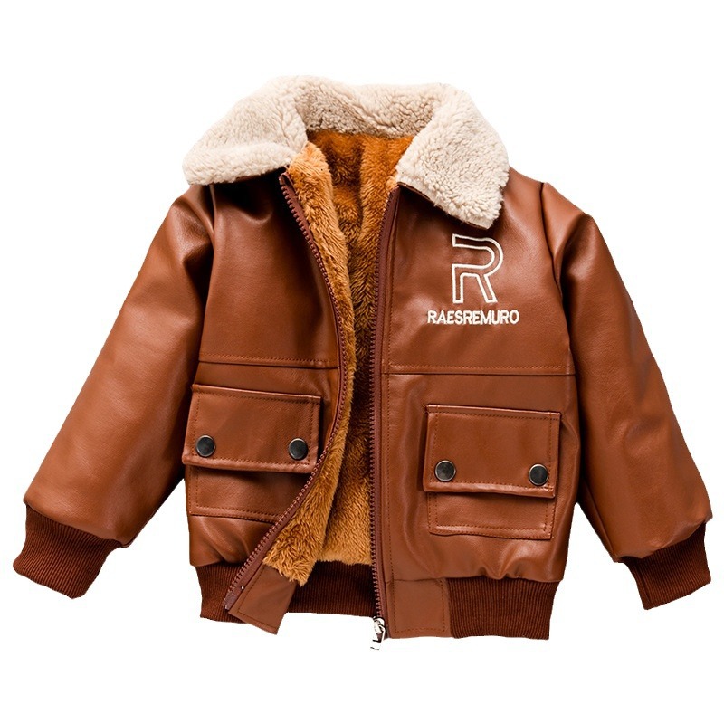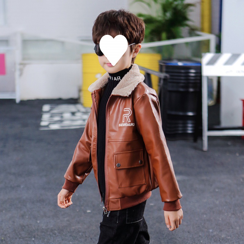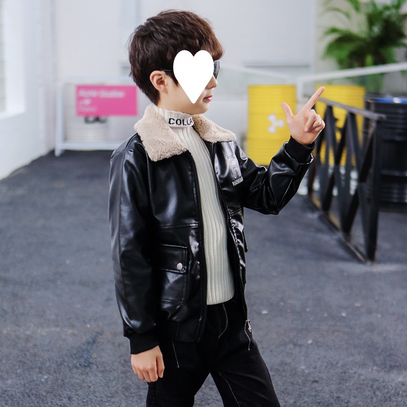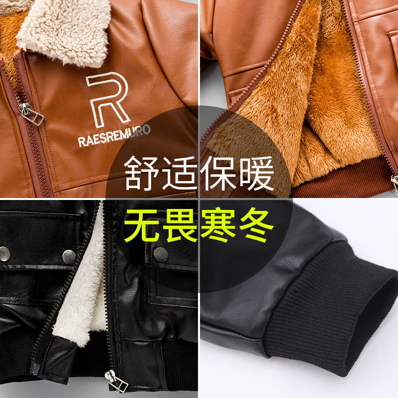 Boys' Coat Winter fleece-lined New Children's Leather fleece-lined Thickened Fur Collar Jacket Mid-Big Children's Western Style Top Trendy