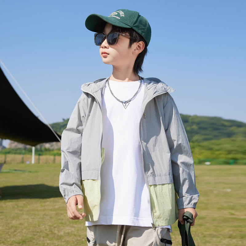 | nameOriginal | Boys' Contrast Color Hooded Sunscreen Jacket Summer 2024 New Children's Lightweight Breathable Outdoor Skin Clothes Trendy |