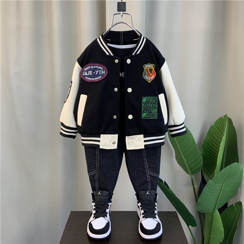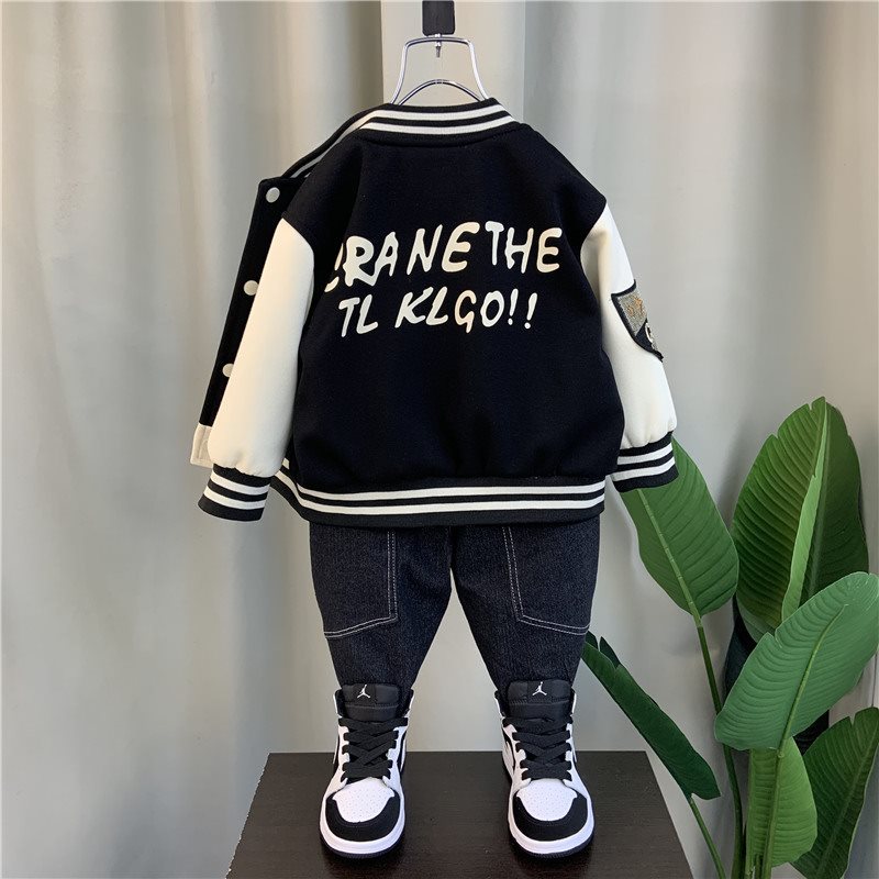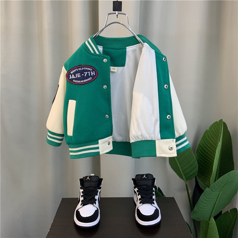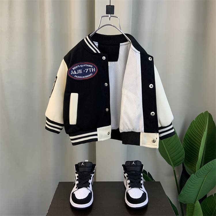 Boys' cool baseball uniform 2024 new spring and autumn children's fried street coat baby winter and spring fleece-lined coat tide