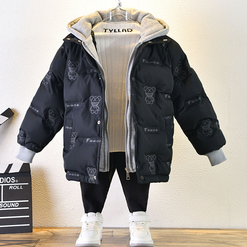 Boys’ cotton-padded jacket winter New Korean style children’s fake two-piece hooded thickened down cotton warm jacket