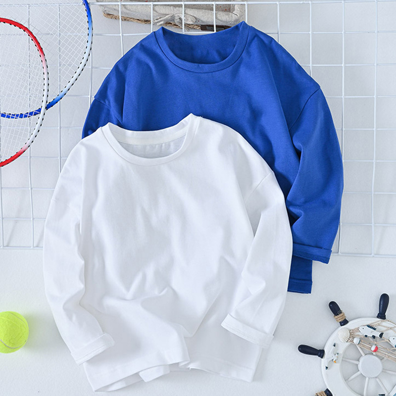 Boys' cotton round neck long-sleeved T-shirt children's 2023 spring and autumn bottoming shirt fashionable all-matching solid color top
