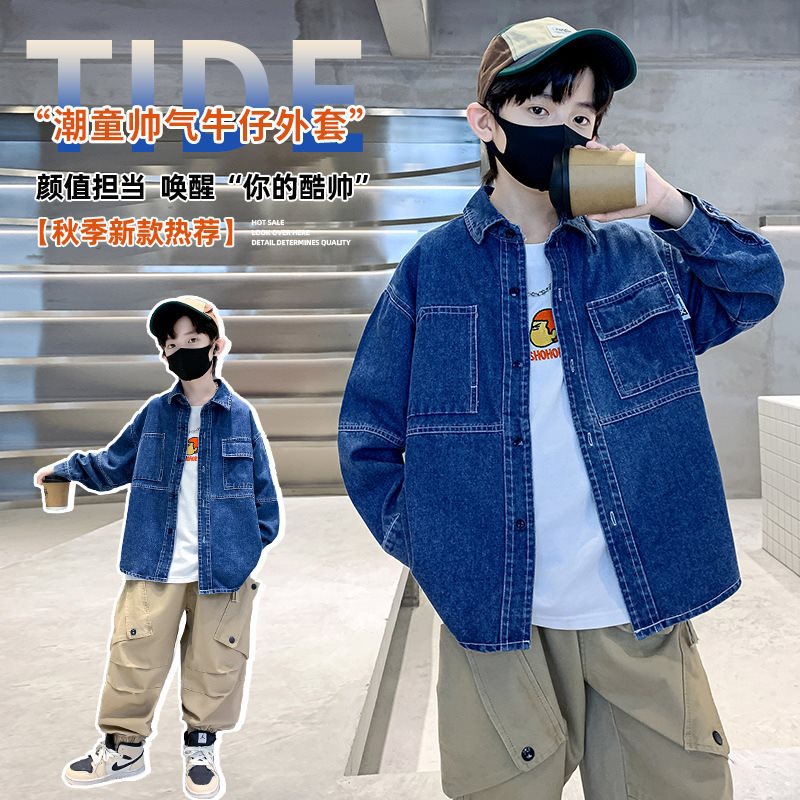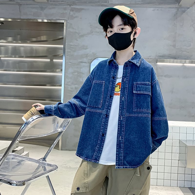 | nameOriginal | Boys' Denim Casual Jacket Spring and Autumn 2023 New Style Fried Street Children's Big Boy's Denim Stitching Long Sleeve Shirt |