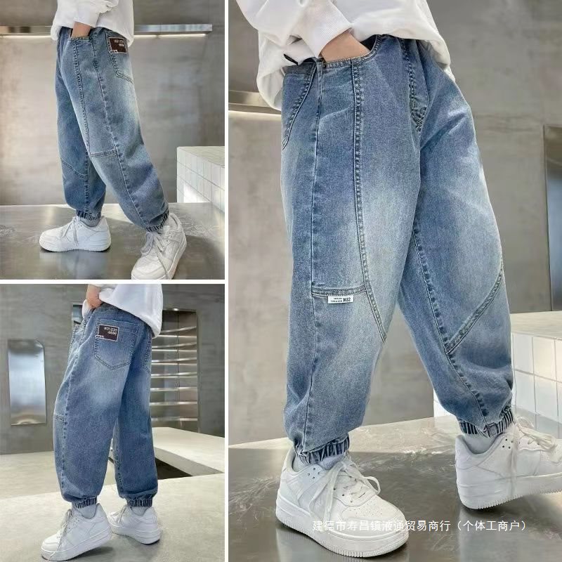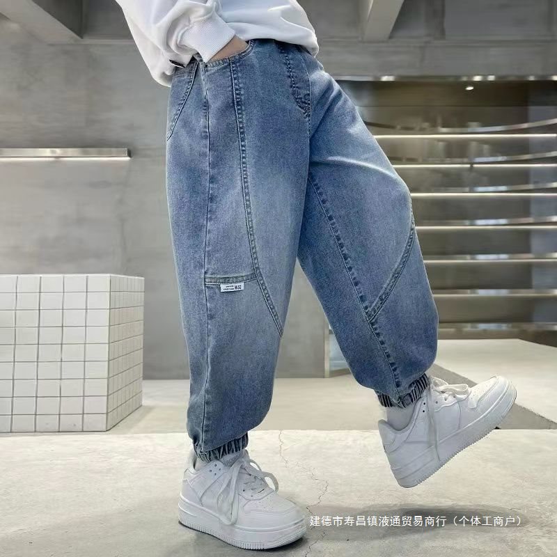 | nameOriginal | Boys' Denim pants spring and autumn thin middle and big children stitching new children's trousers loose handsome ankle-tied Sports |