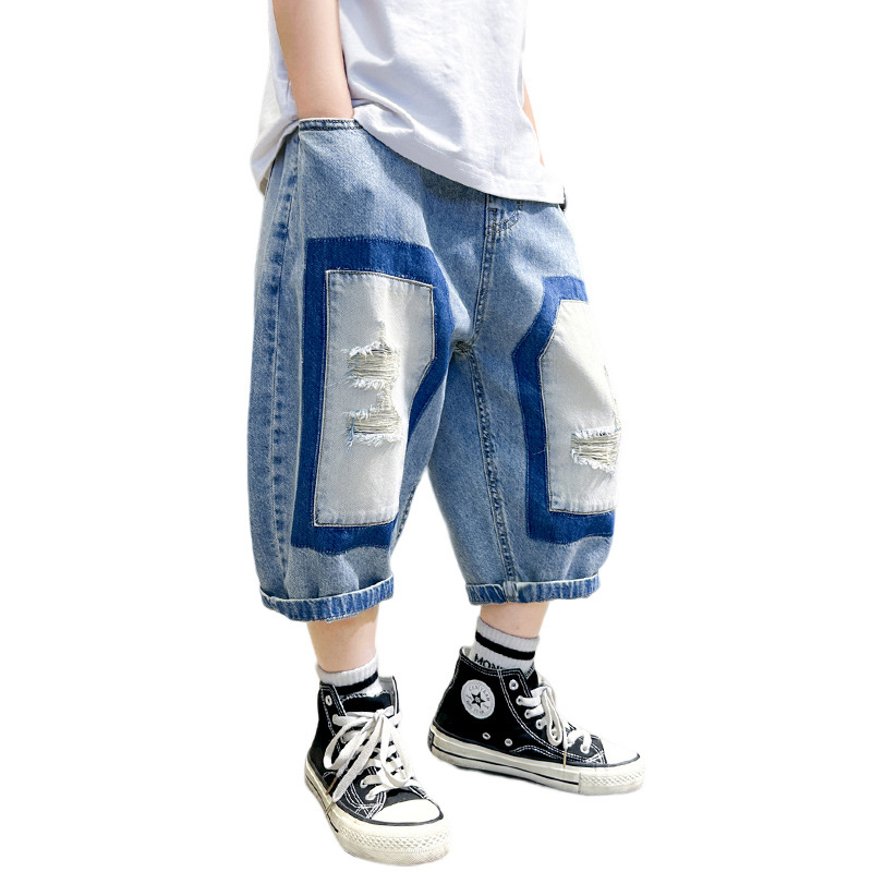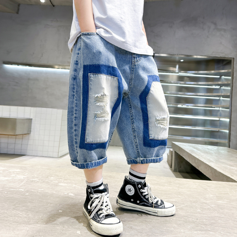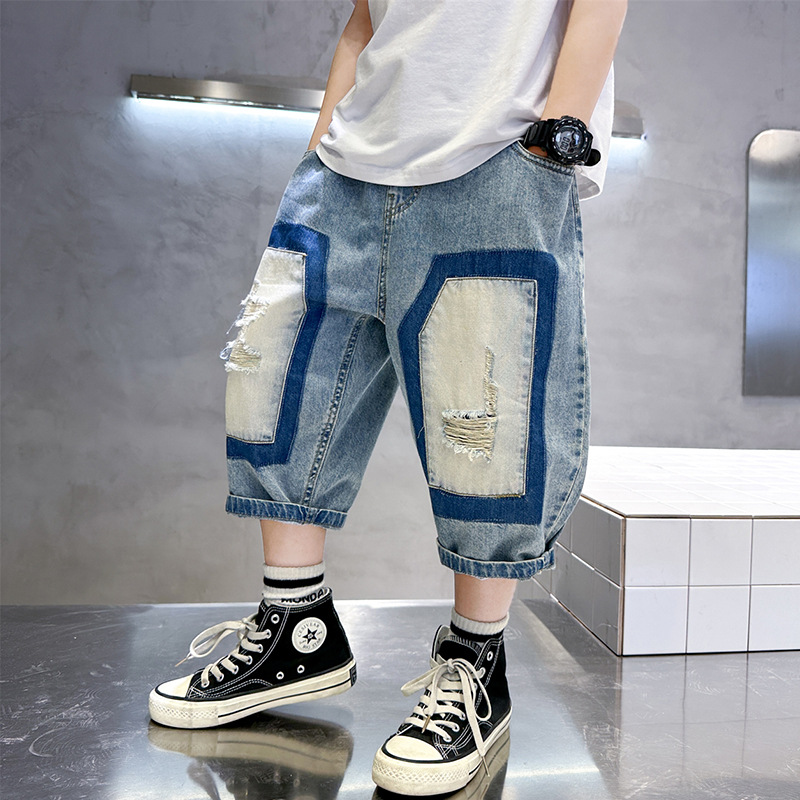 | nameOriginal | Boys' Denim Pants Summer 2024 New Arrival Zhongda Children's Handsome Loose Shorts Boys Summer Pants |