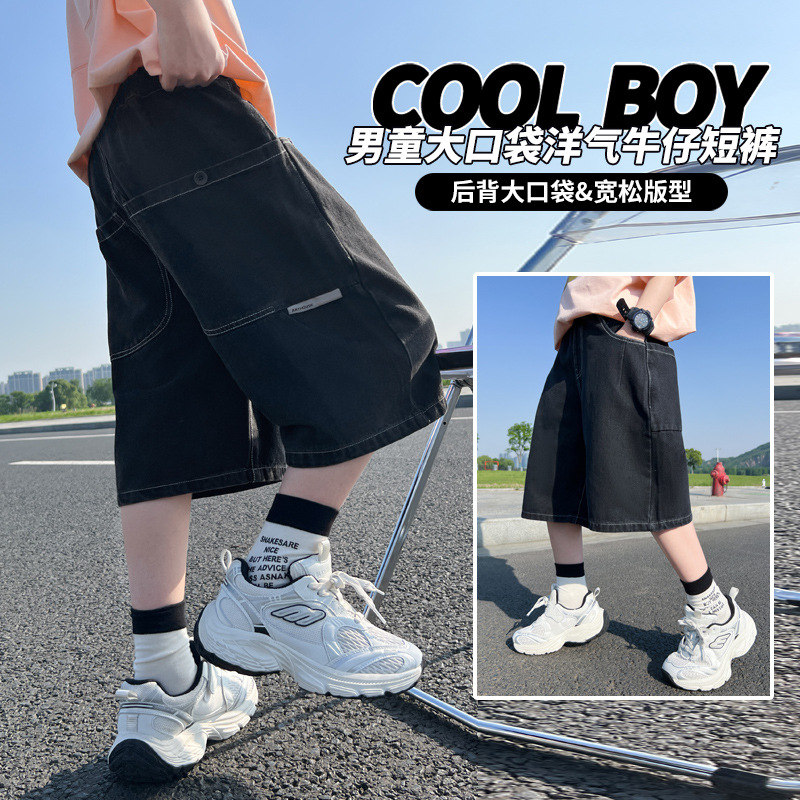 | nameOriginal | Boys' Denim Pants Summer 2024 New Children's Thin Shorts Five-point Pants Fried Street Pants Big Children's Summer Fashion |
