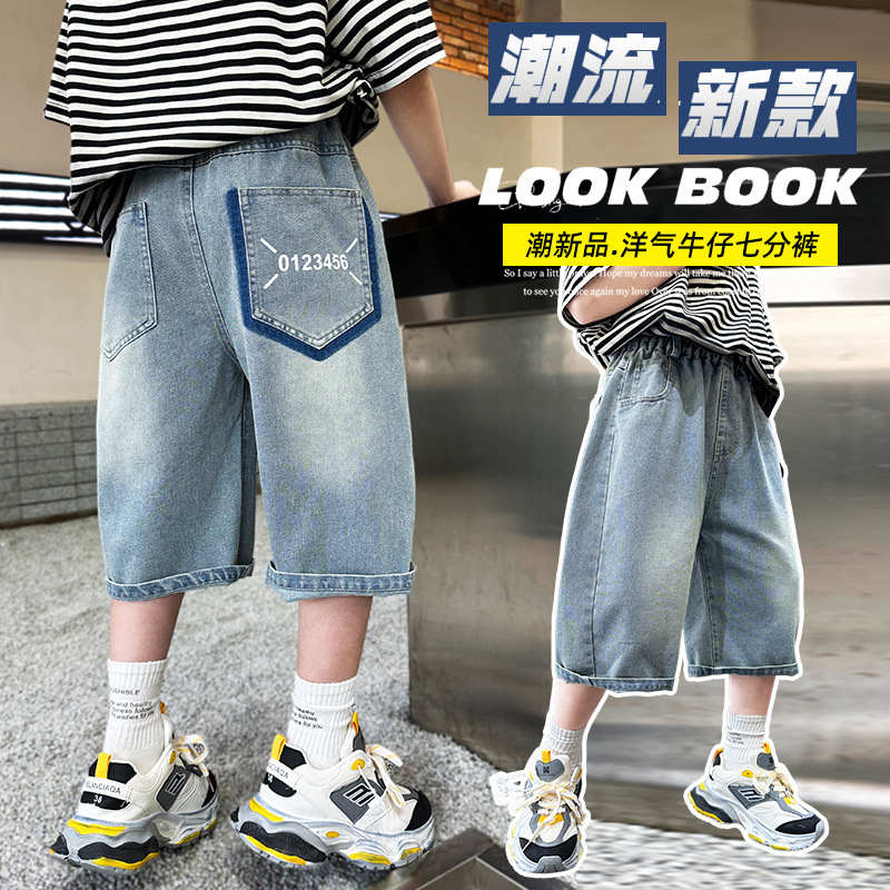 Boys Denim Pants Summer Thin 2024 New Children's Pants Big Children's Five-point Summer Shorts Capri Pants
