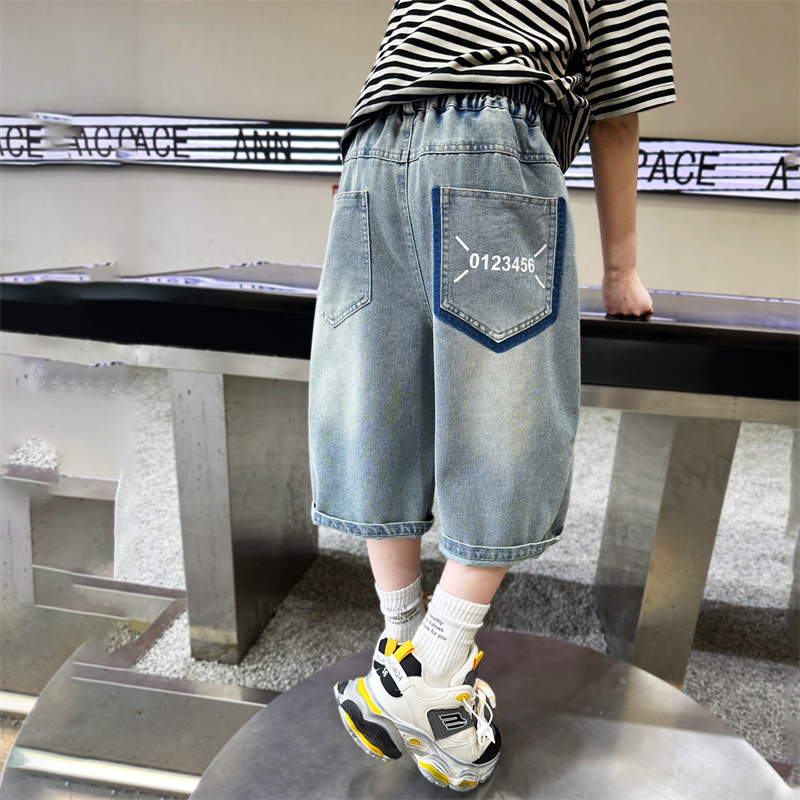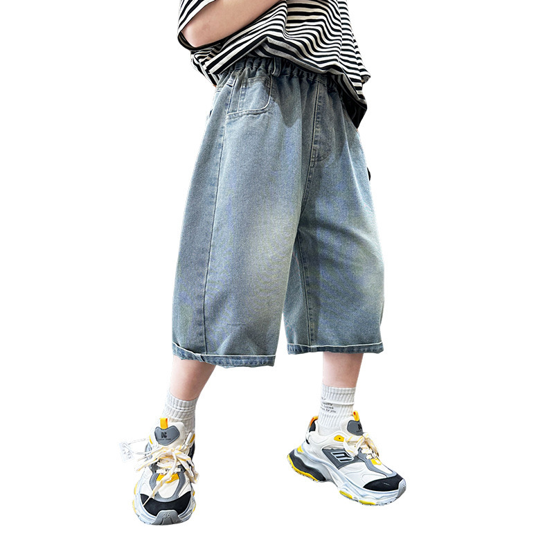 Boys Denim Pants Summer Thin 2024 New Children’s Pants Big Children’s Five-point Summer Shorts Capri Pants