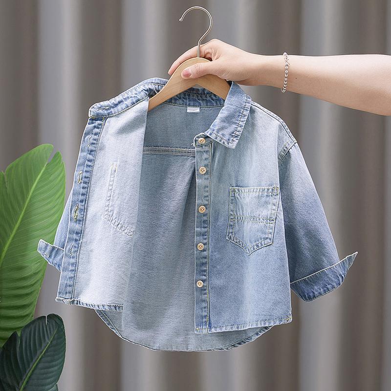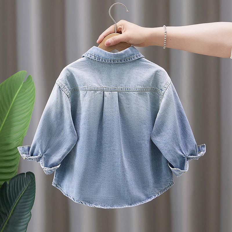 Boys' Denim Shirt 2024 New Children's Long Sleeve Shirt Spring and Autumn Loose Baby Stylish Fashionable Coat Trendy