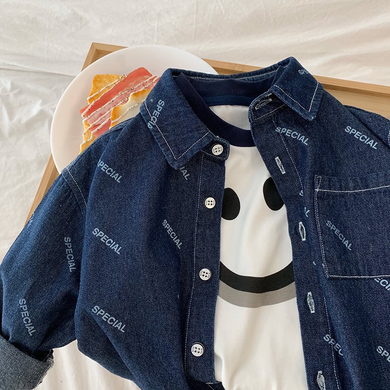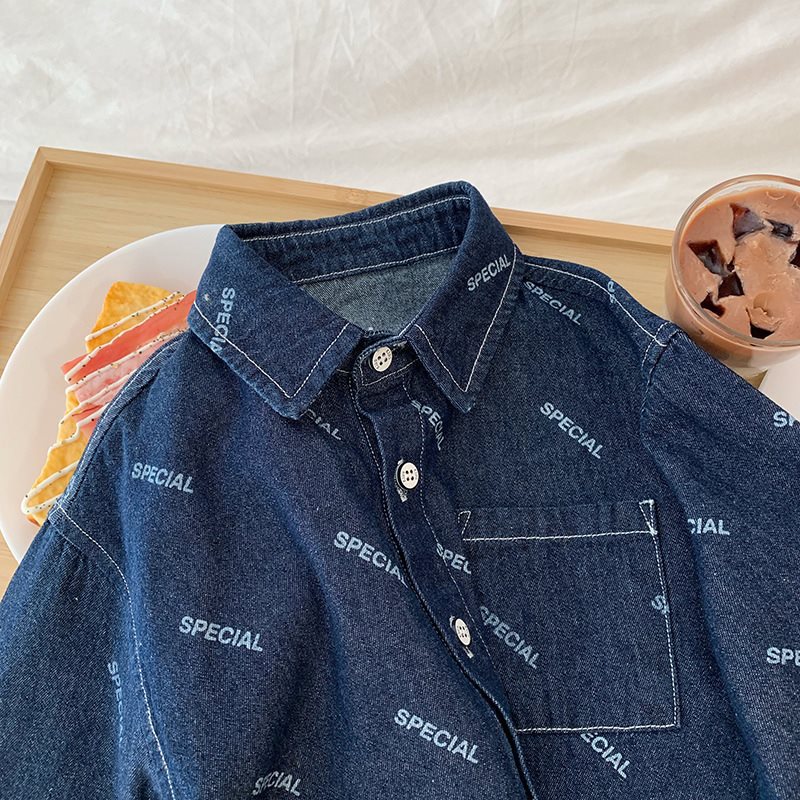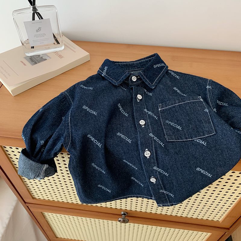 | nameOriginal | Boys' Denim Shirt Autumn Full Print Hong Kong Style New Style Fried Street Children's Coat Long Sleeve Shirt Trendy |
