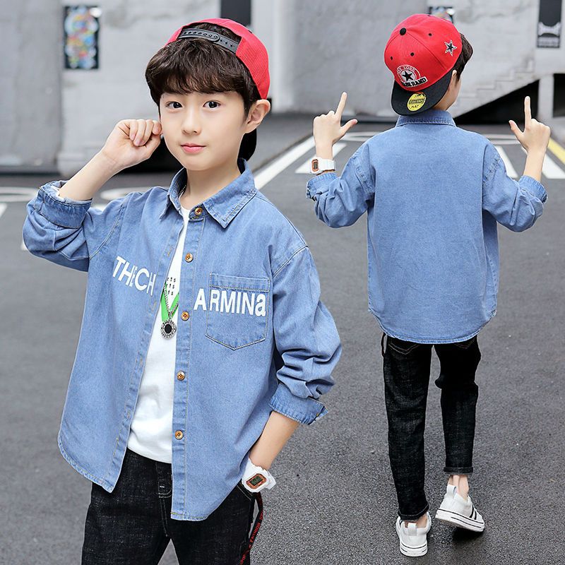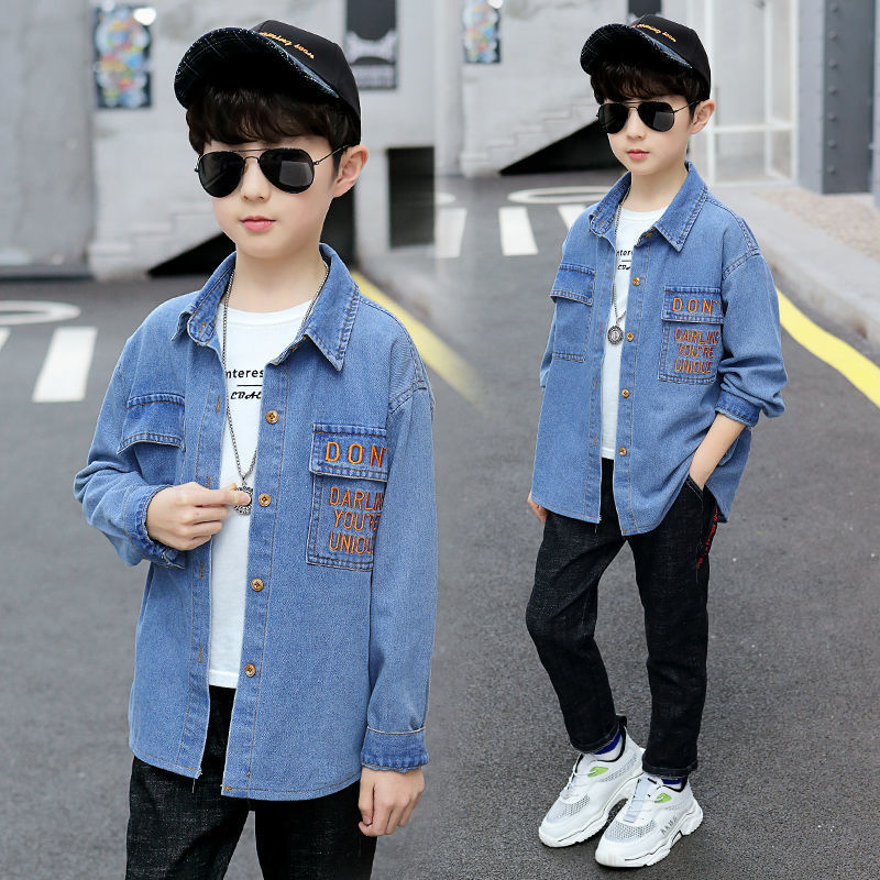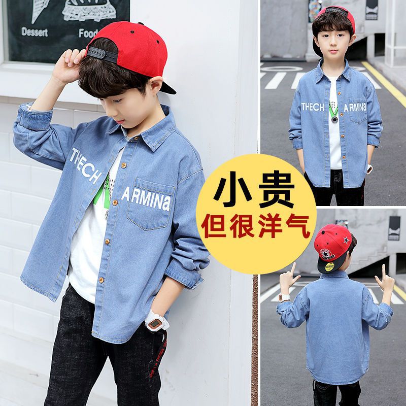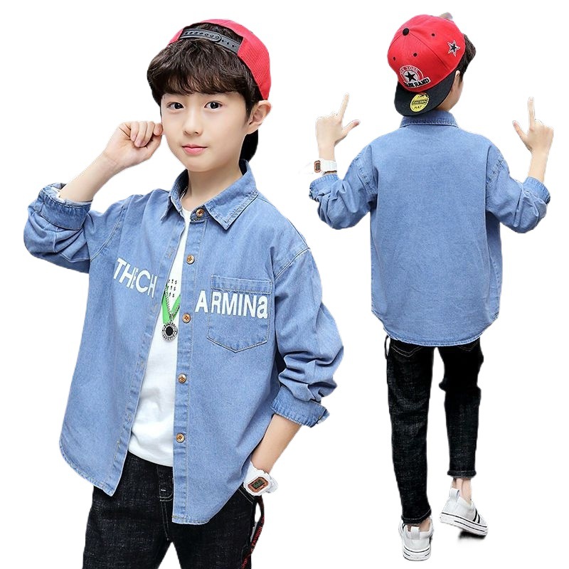 Boys’ Denim Shirt Spring Clothing New Korean Style Western Style Middle and Large Children’s Spring and Autumn Shirt Children’s Clothing Handsome Jacket Casual
