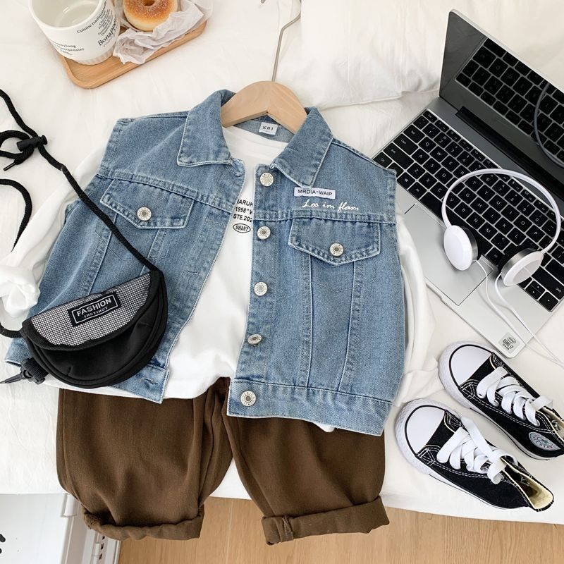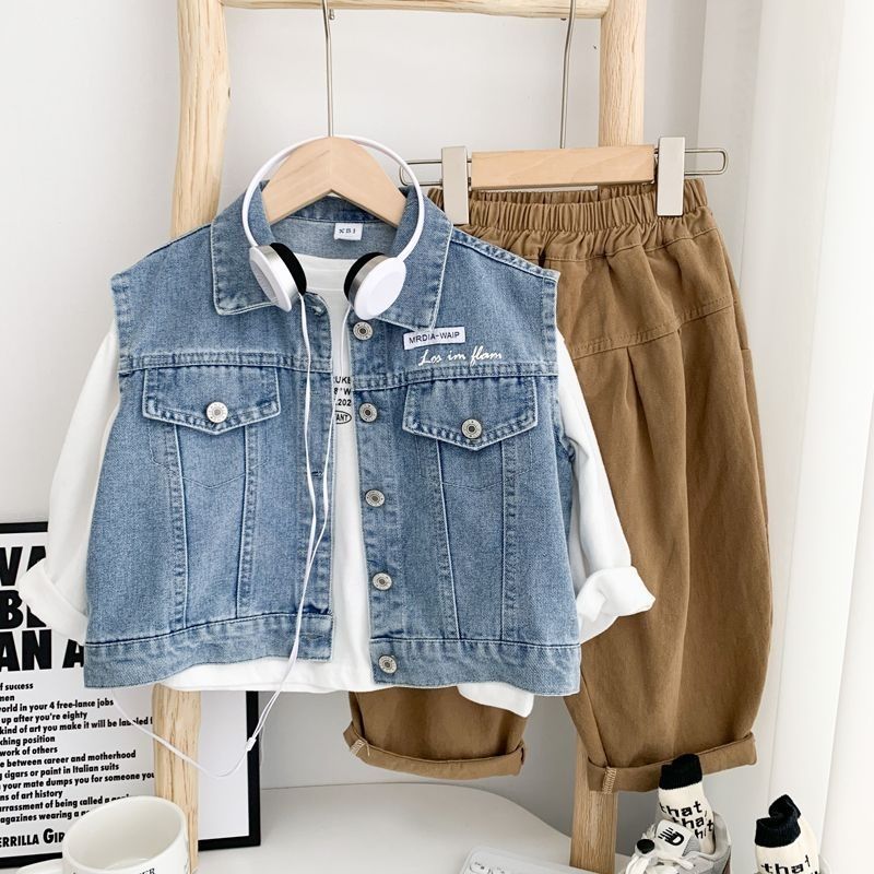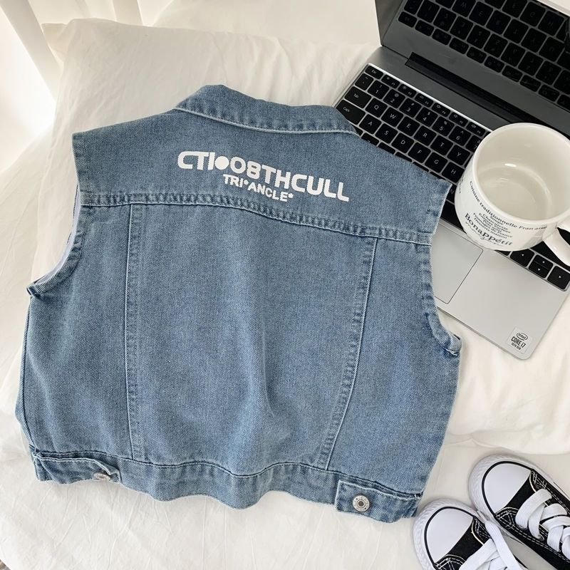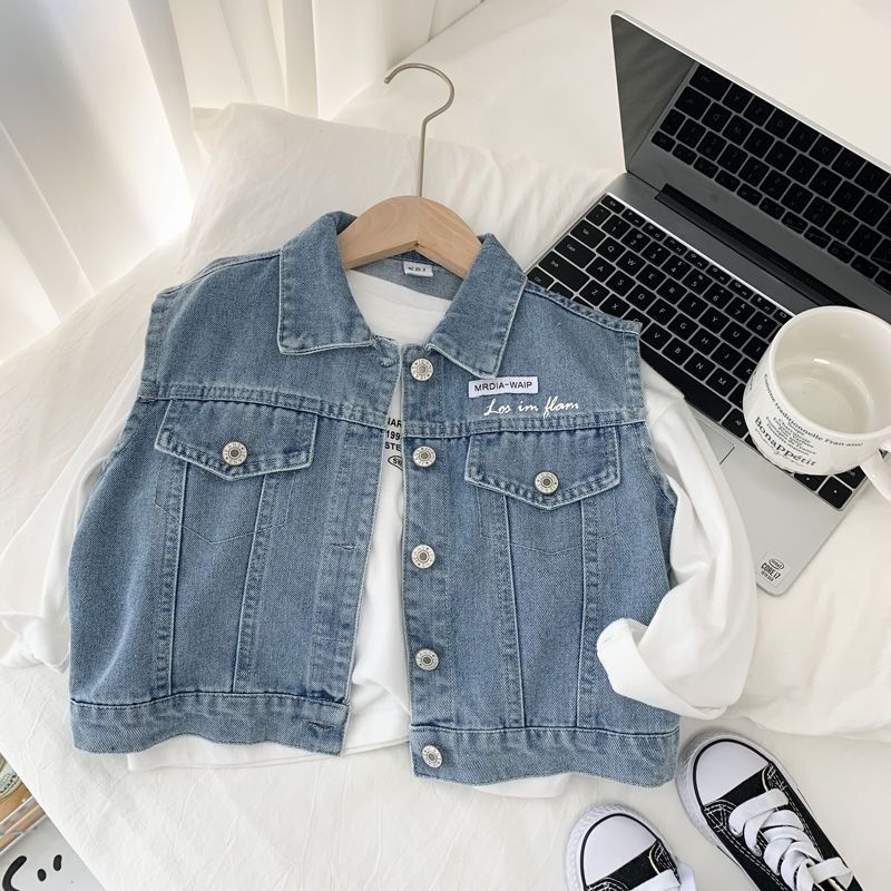Boys' Denim waistcoat spring and autumn 2024 new Korean version of children's handsome waistcoat children's leisure fashion cool coat