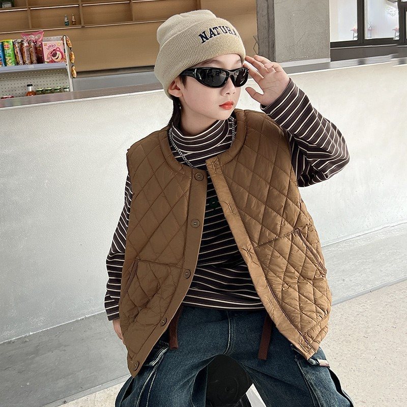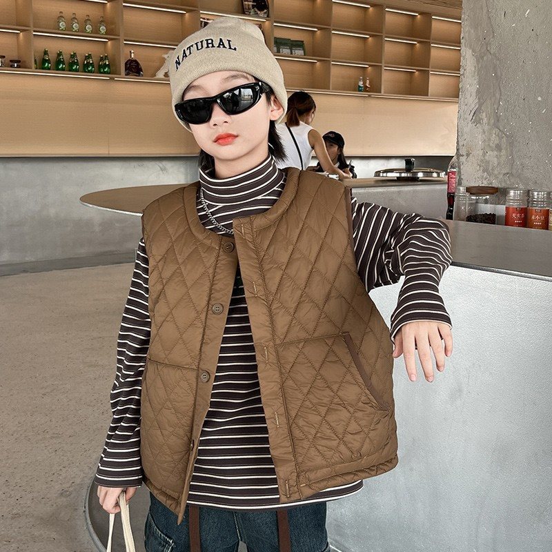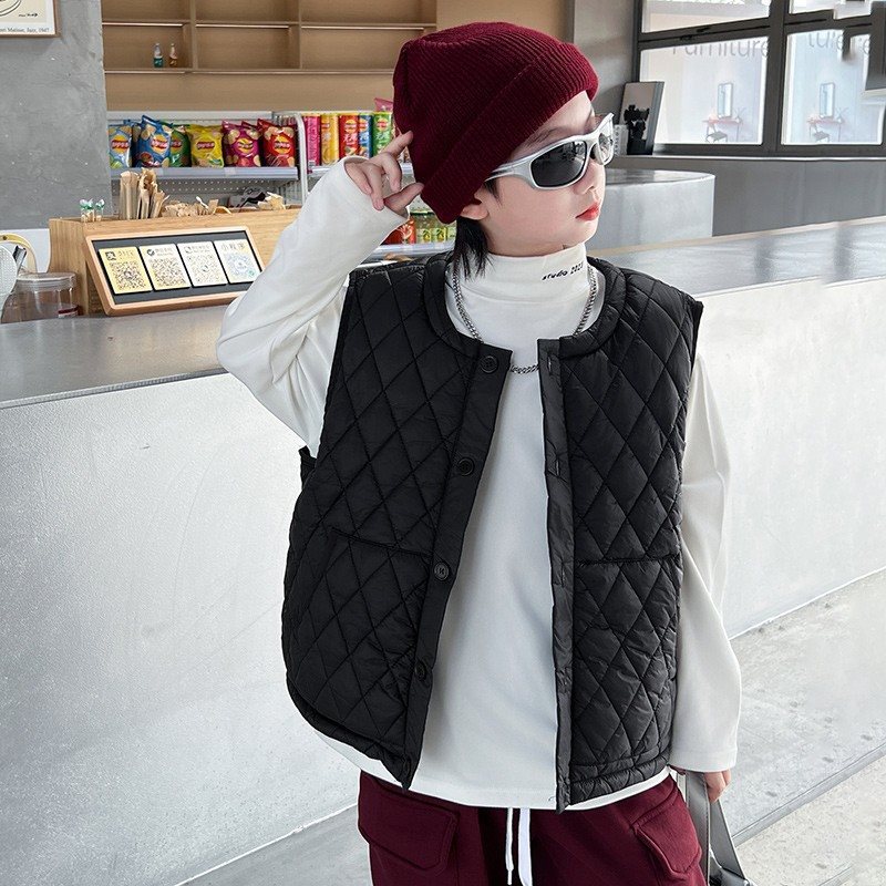 Boys Down Cotton Vest Autumn 2023 New Children Autumn and Winter Vest Jacket Cotton Styline Inner Jacket