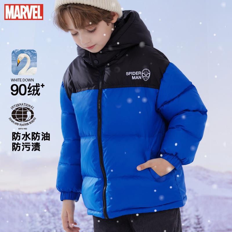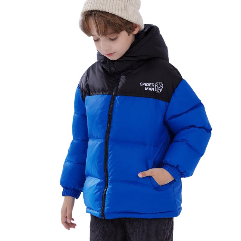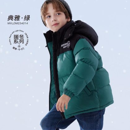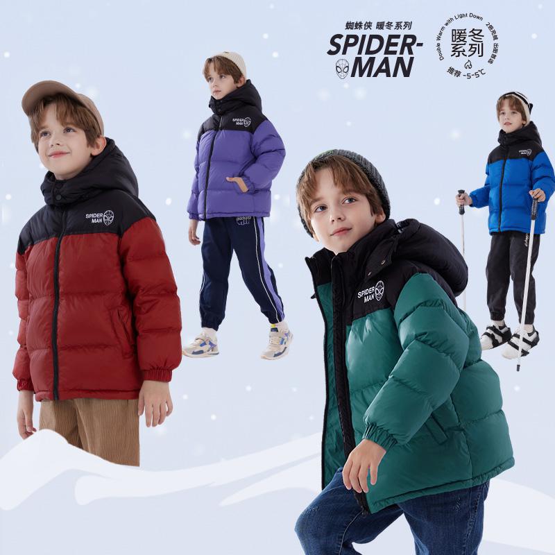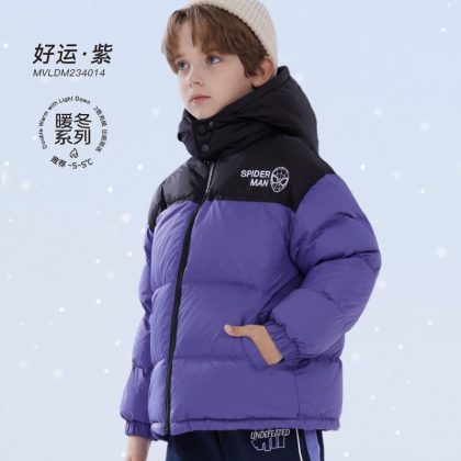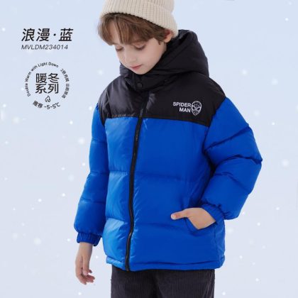 Boys’ Down Jacket Children’s Winter Clothes New Style White Duck Down Hooded Short Thickened Western Style Coat for Middle and Large Children in Winter