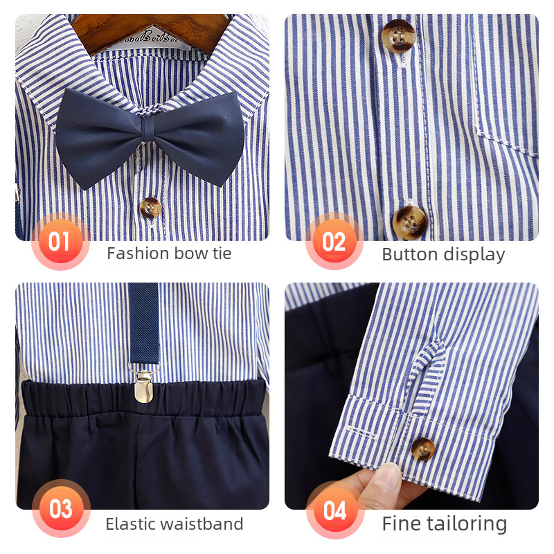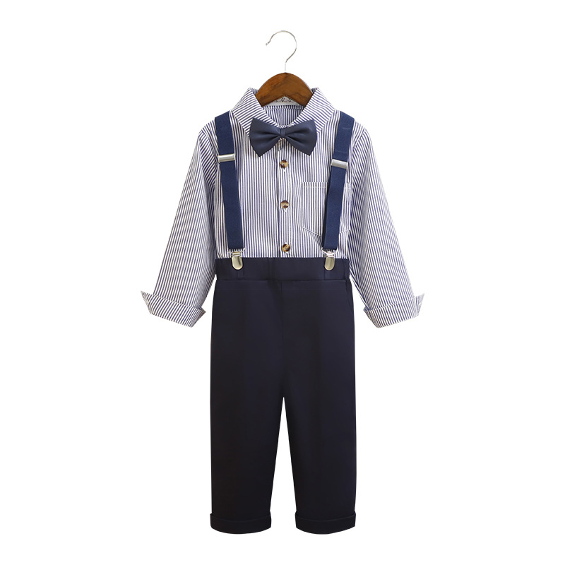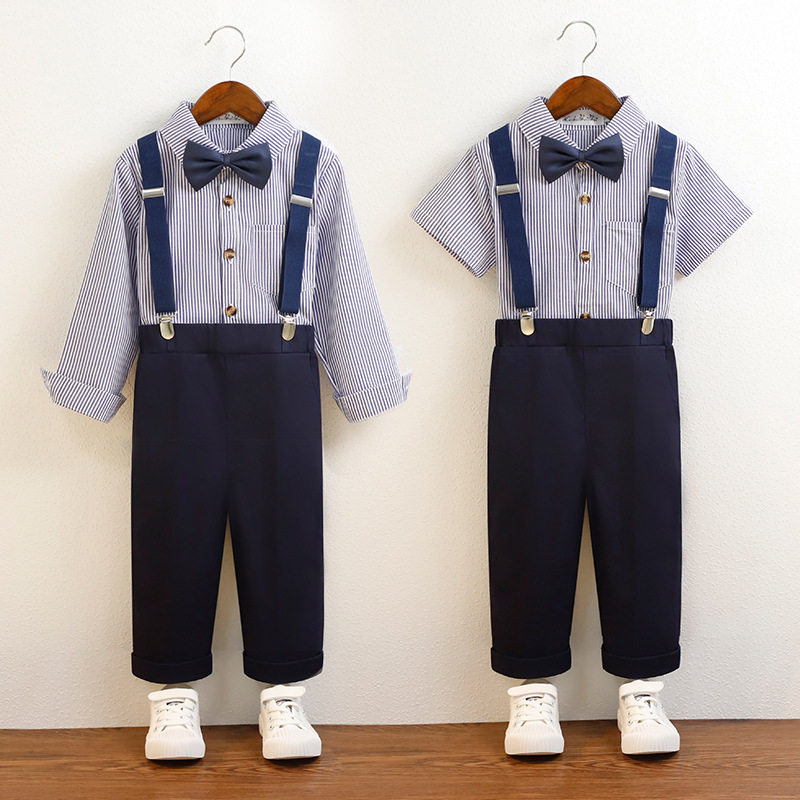 Boys' dress spring and summer new Korean style striped suspender pants two-piece children's graduation chorus costume suit