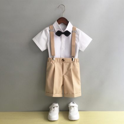 | nameOriginal | Boys' dress suit kindergarten graduation clothes suspender pants summer Little host children's suit flower girl performance clothes |