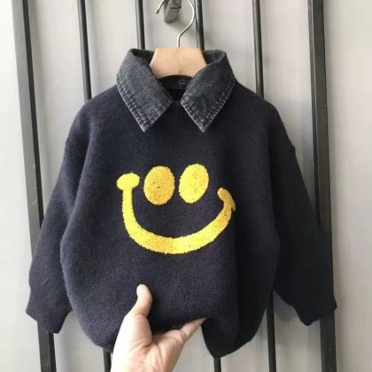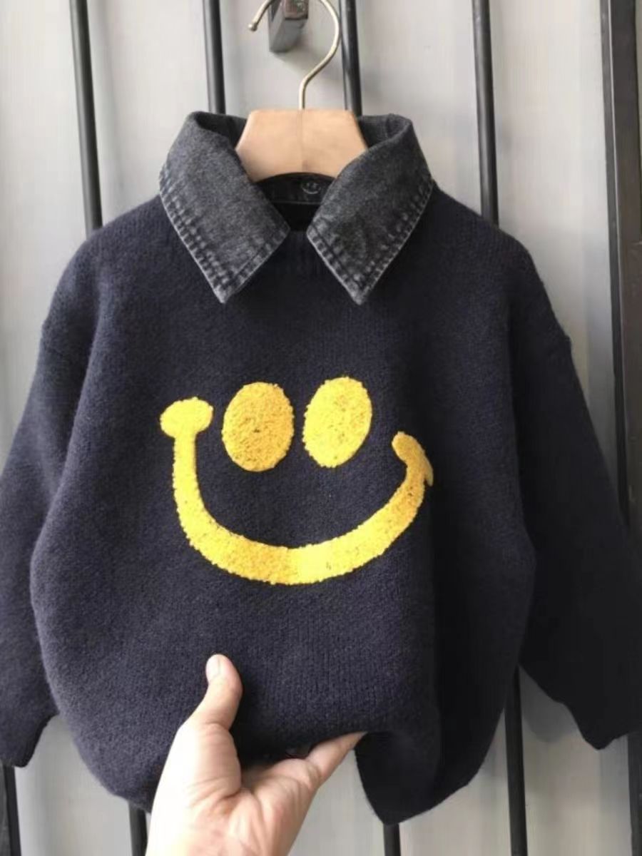 | nameOriginal | Boys' fake two-piece lapel sweater 2023 autumn and winter new medium and big children's thickened sweater fried street ruffle handsome top fashion |
