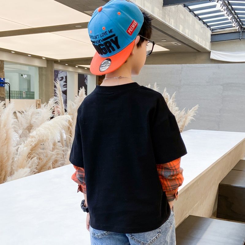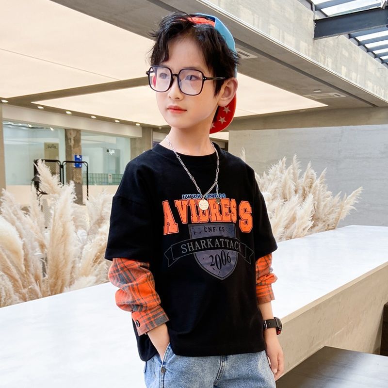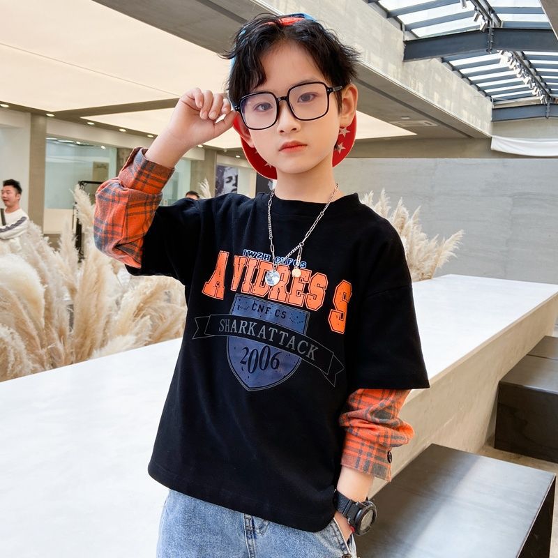 Boys' Fake Two-Piece Long-Sleeved T-Shirt 2024 New Sweaters Spring and Autumn Western Style Mid-Big Boy Thin Top