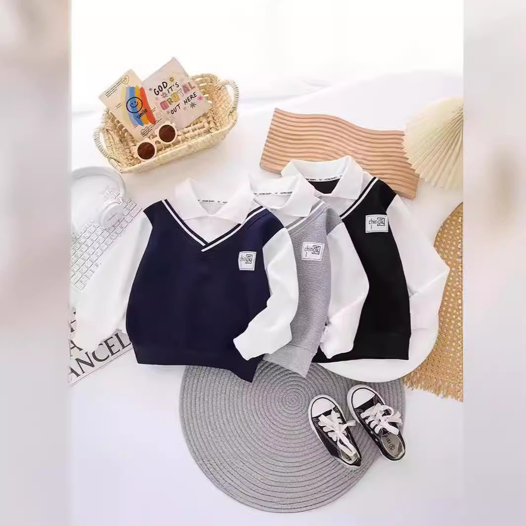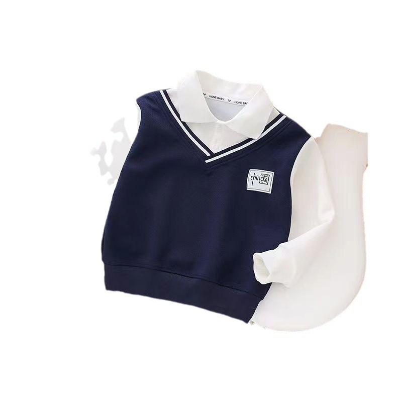 | nameOriginal | Boys' Fake Two-Piece Spring and Autumn 2024 Men's Polo Shirt Sweater Children's Boys' Big Boy's Autumn Western Style Handsome |