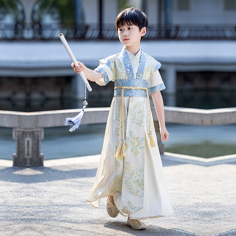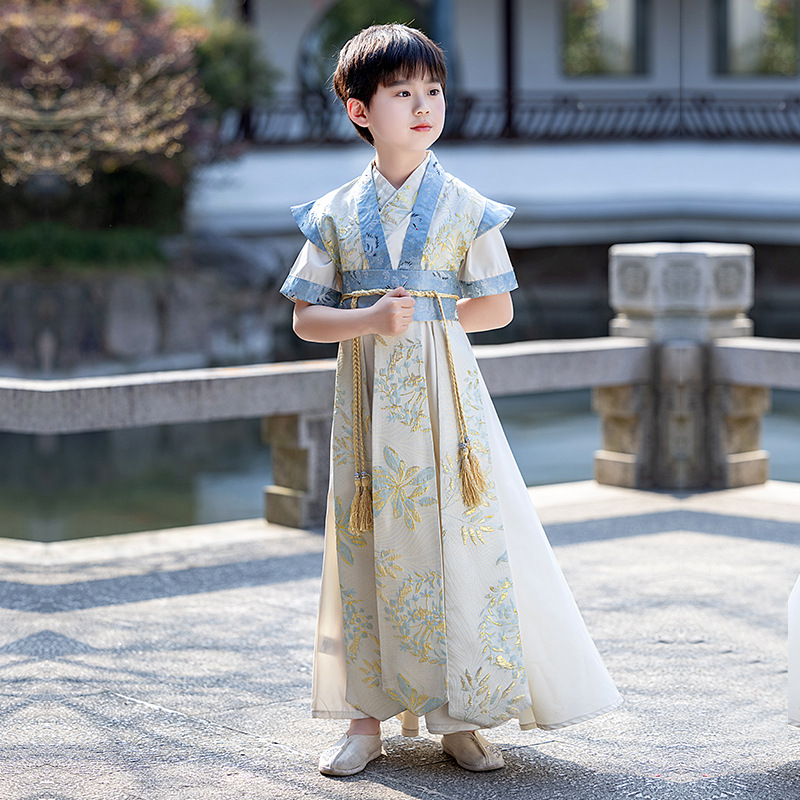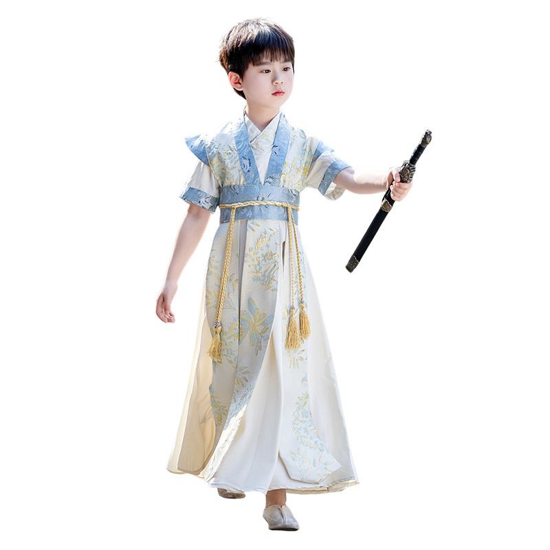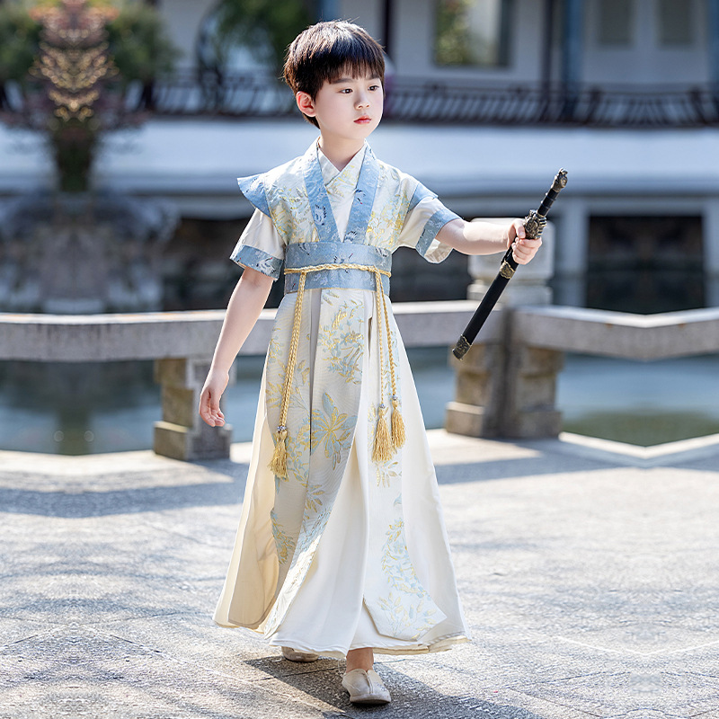 Boys Hanfu 2024 new summer antique short sleeve children's ancient costume senior chivalrous Chinese performance set wholesale