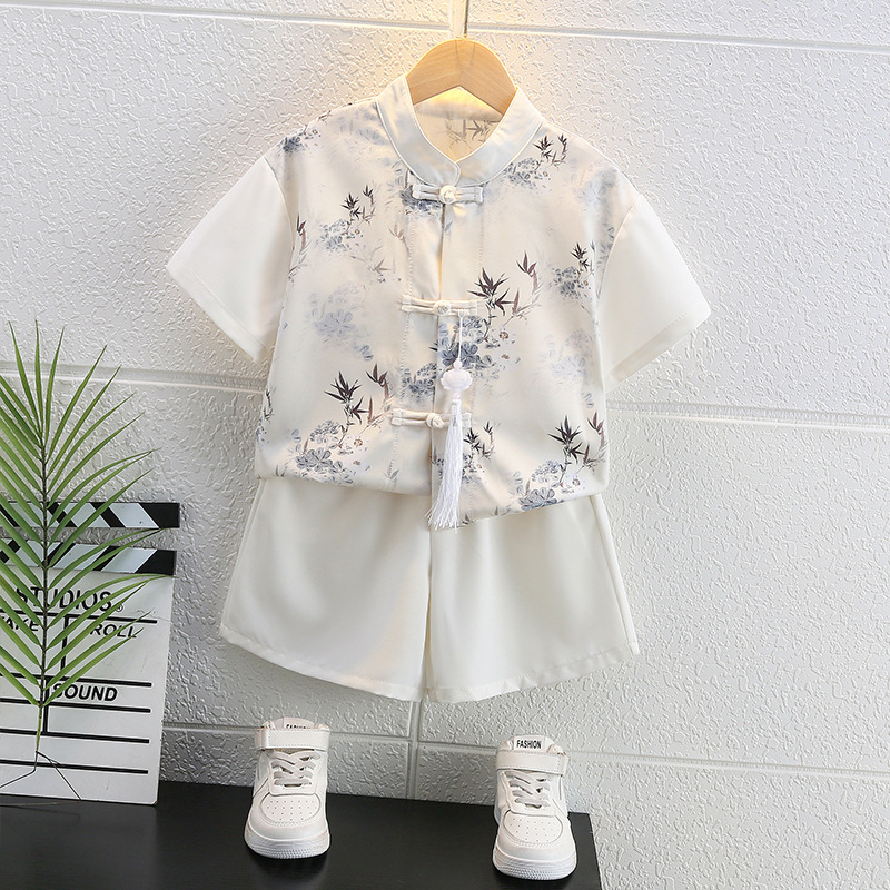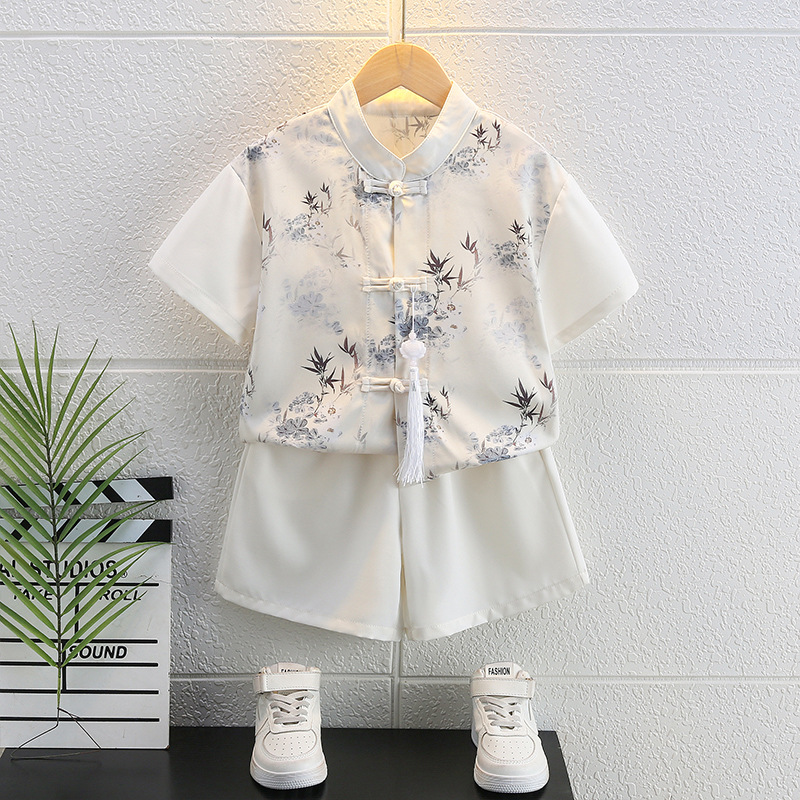 | nameOriginal | Boys' Hanfu suit Children's Summer Ink National Style Buckle Short-sleeved Cardigan Shorts Two-piece New Chinese Summer Dress |