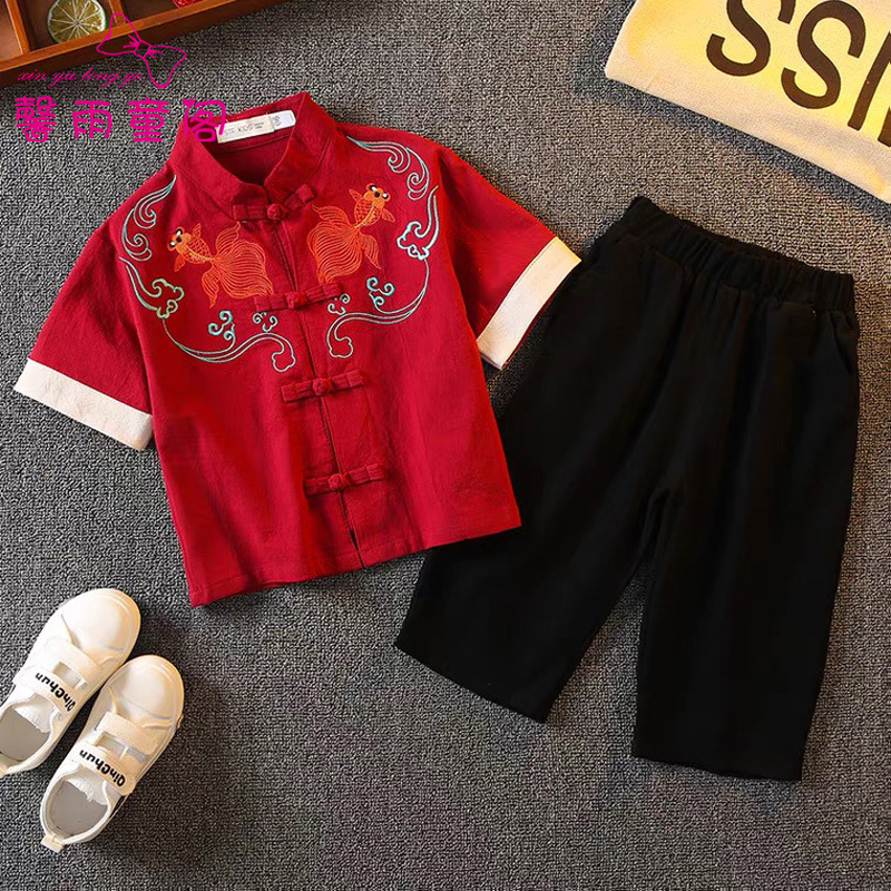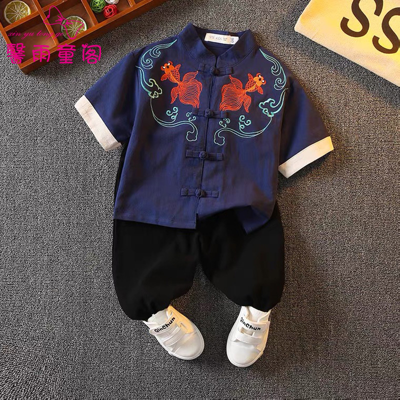 | nameOriginal | Boy's Hanfu suit summer short-sleeved ancient costume children's Chinese costume chinese style baby improved Tang suit garden pan |