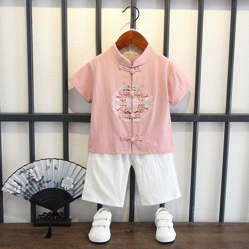 Boy’s Hanfu summer thin children’s short sleeve suit baby Chinese style Tang suit retro style spring and autumn children’s Pan