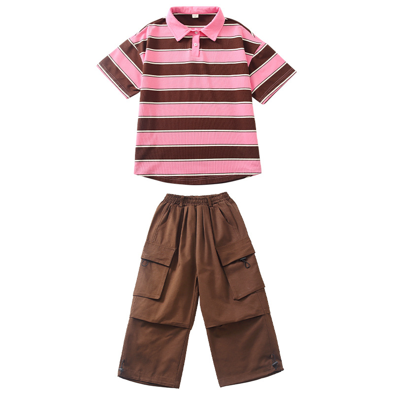 | nameOriginal | Boys' Hip-hop Suit Children's Striped Short-sleeved T-shirt Children's Trendy Fashion Clothes Girls' Hip-hop Work Pants Performance Clothes |
