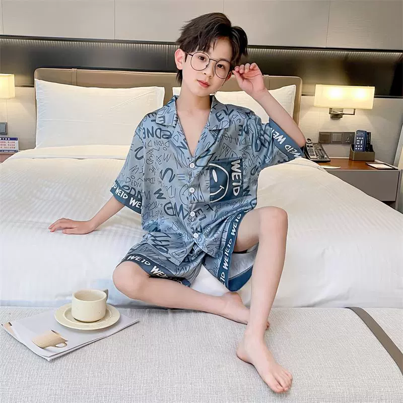 | nameOriginal | Boys' ice and snow silk pajamas summer thin large children's short-sleeved home clothes summer children's air-conditioned clothes cardigan suit |