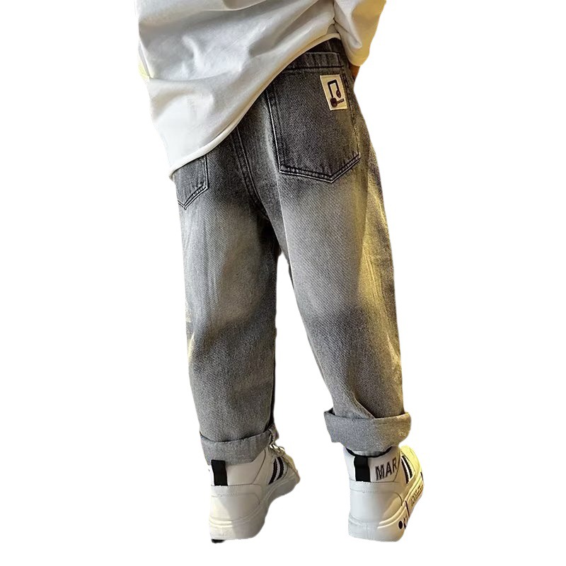 Boys' Jeans Spring and Autumn 2024 New Arrival Ripped Straight Pants Loose Fashionable Handsome Street-Fried Children's Trousers