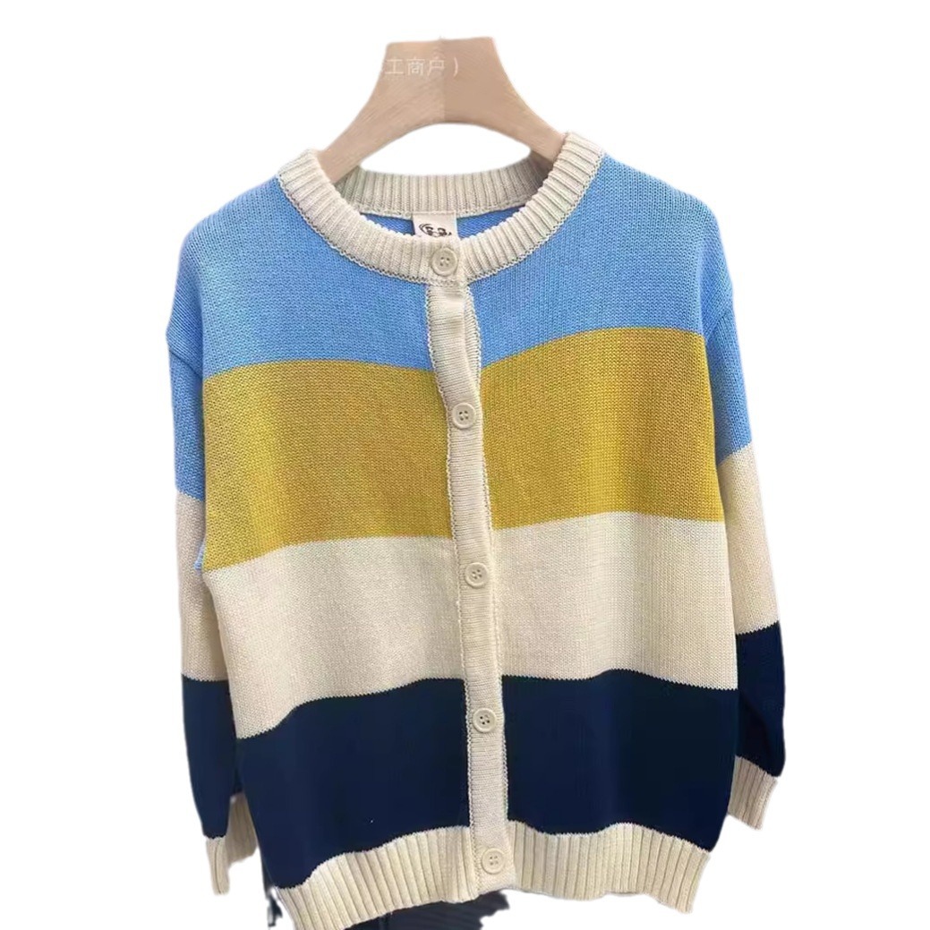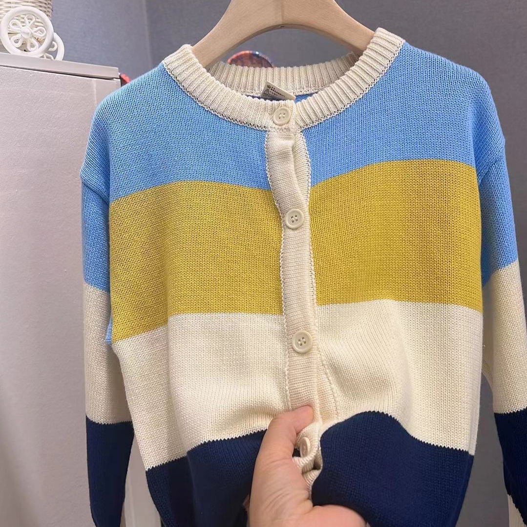 | nameOriginal | Boys' Knitted Coat Spring and Autumn 2024 New Children's Cardigan Sweater Styline Striped Crewneck Korean Style Sweater |