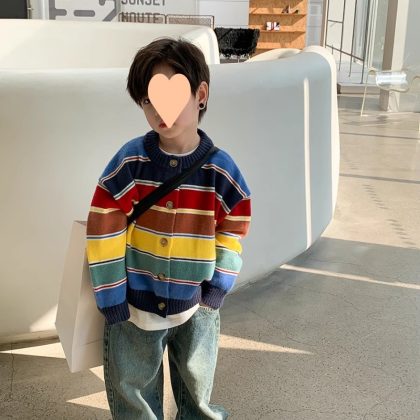 | nameOriginal | Boys' Mori Sweater 2024 Spring and Autumn New Color Striped Fashion Knitted Cardigan Children's Handsome All-match Jacket |