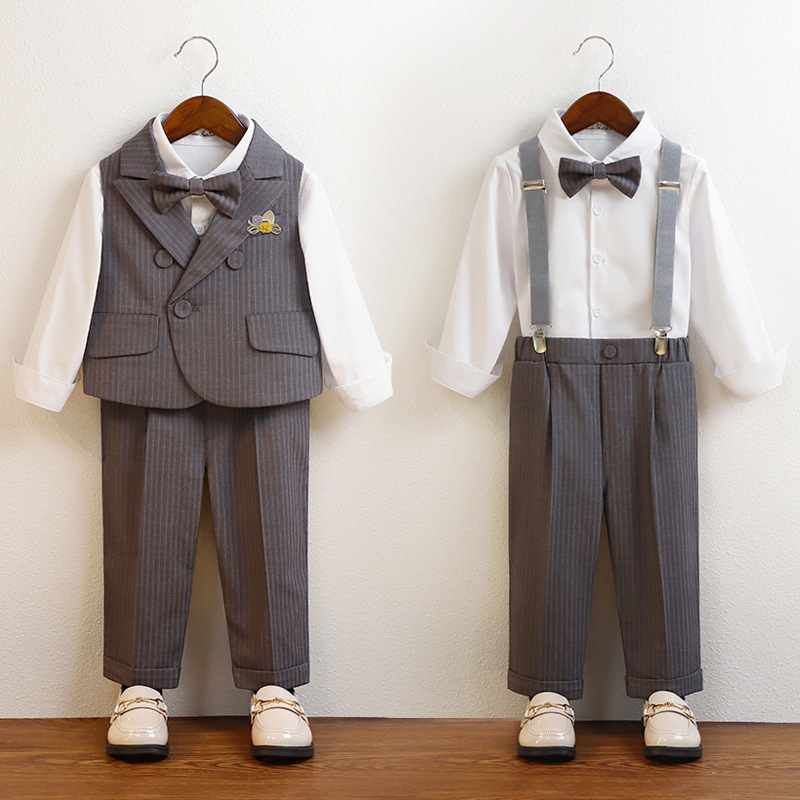 Boys’ overalls suit spring striped Korean style vest children’s chorus performance dress birthday photography clothing