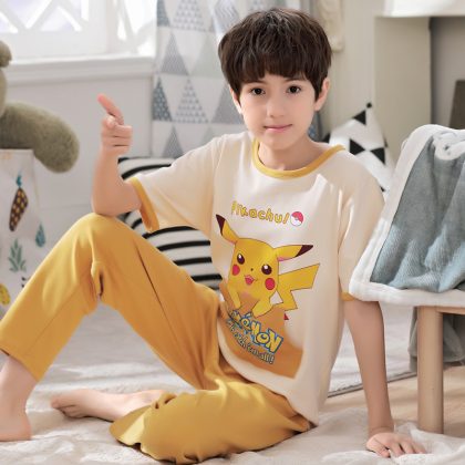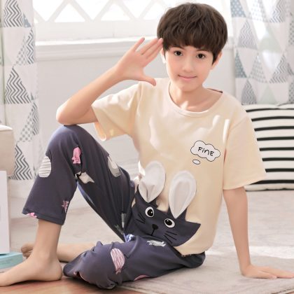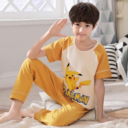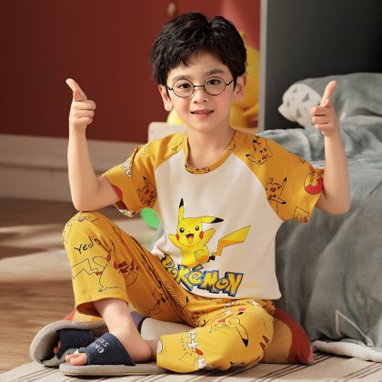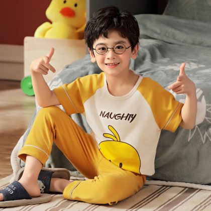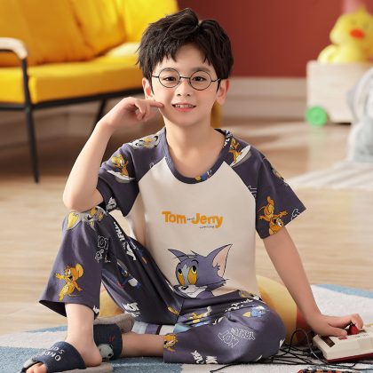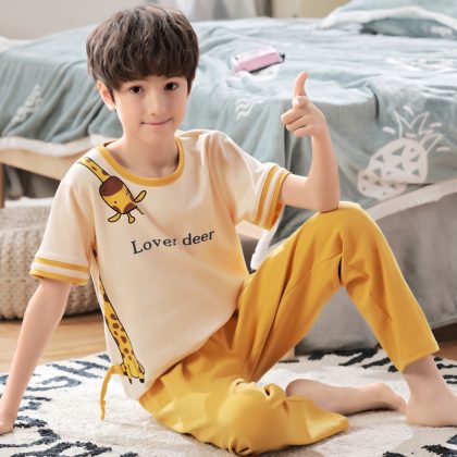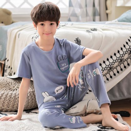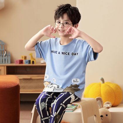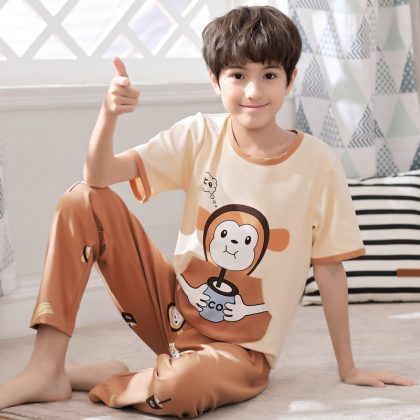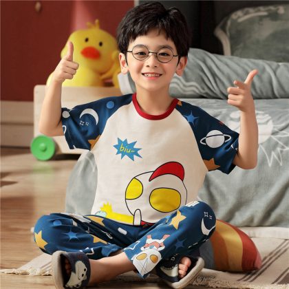 | nameOriginal | Boys' pajamas spring and autumn thin pure cotton 2024 new cotton children's summer short-sleeved trousers boys' cartoon dinosaur |