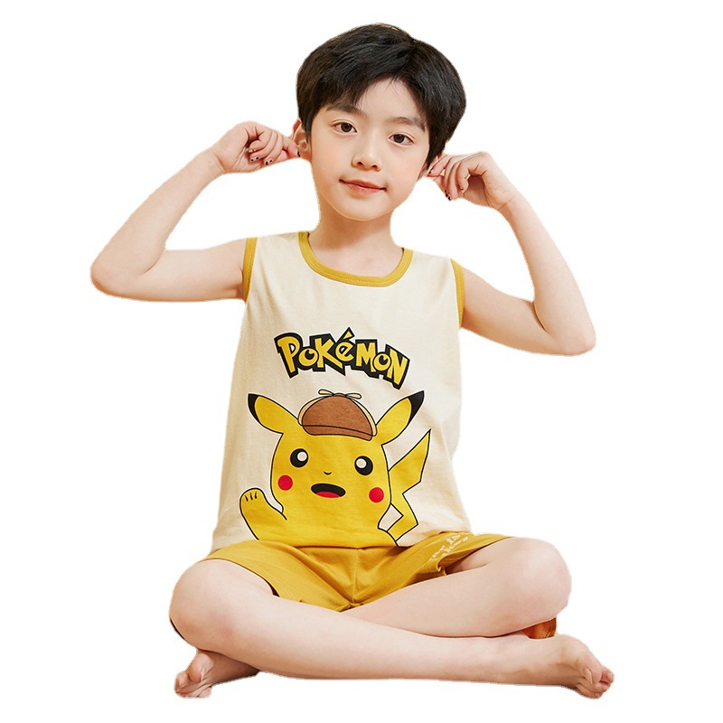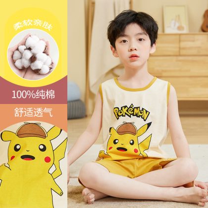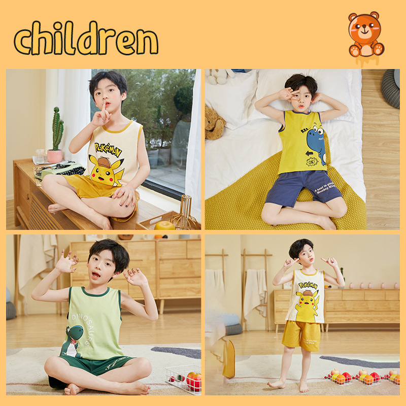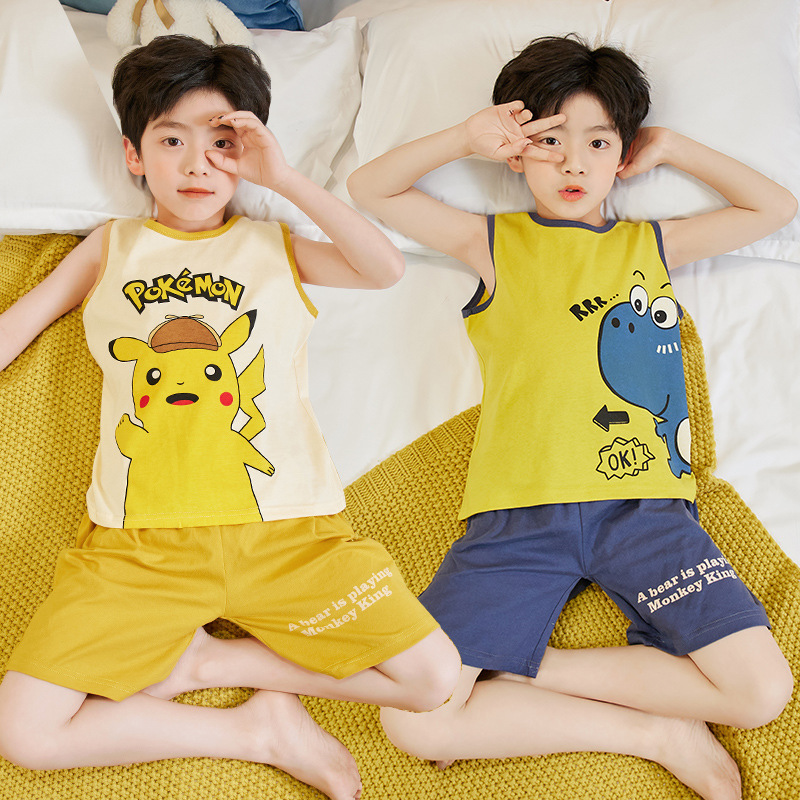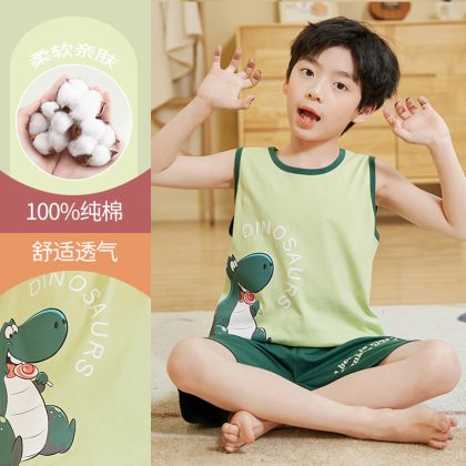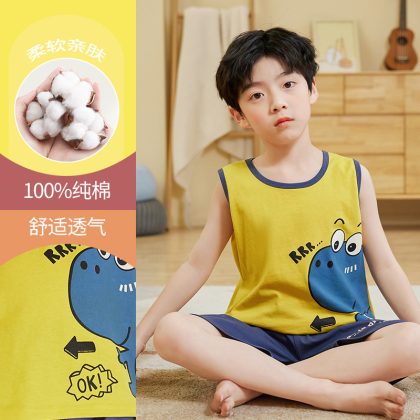 Boys’ Pajamas Summer Thin Small and Medium-sized Children’s New Cotton Cartoon Home Clothes suit Air-conditioning Clothes Two-piece Set